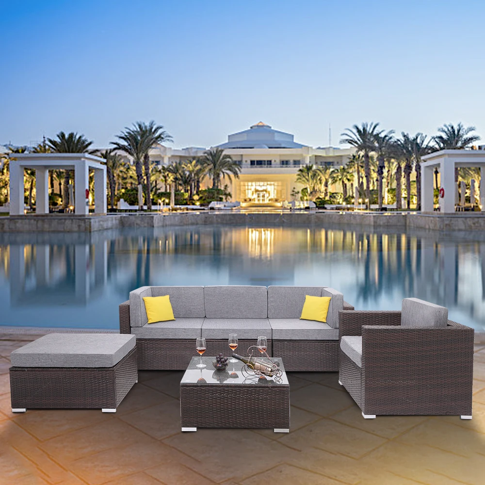 Цвет: 19460226 6 штук, диван из ротанга с плетением из полиэтилена, для патио