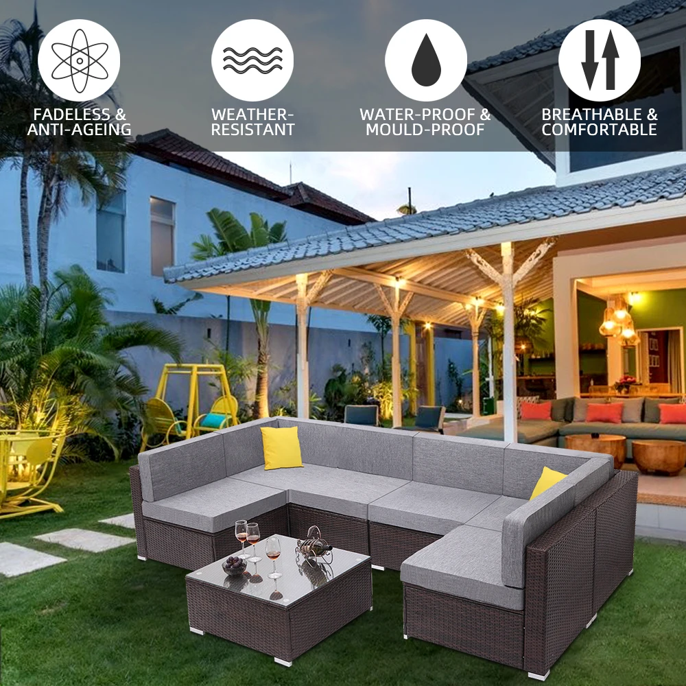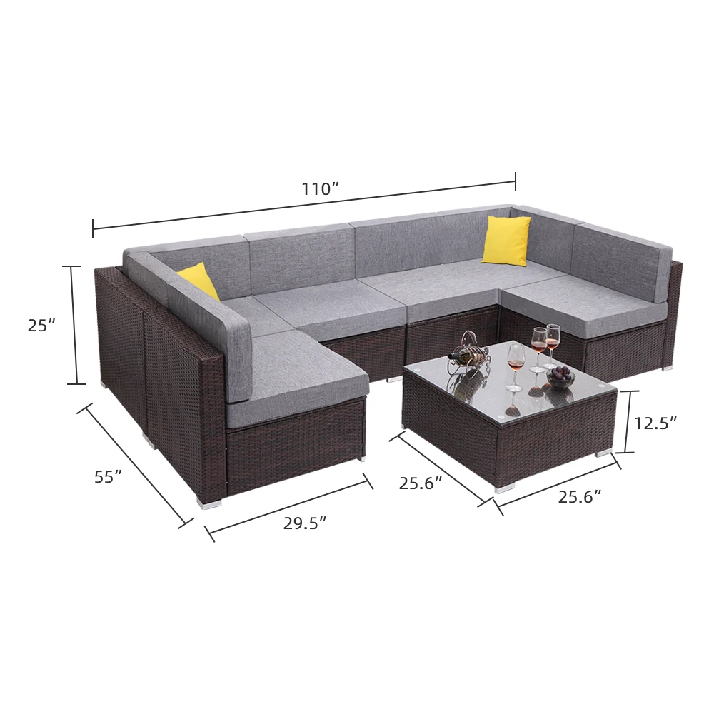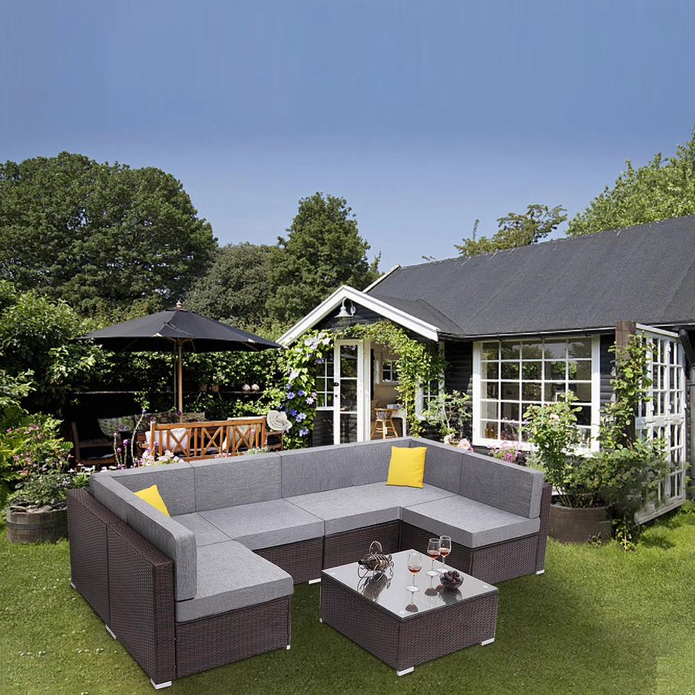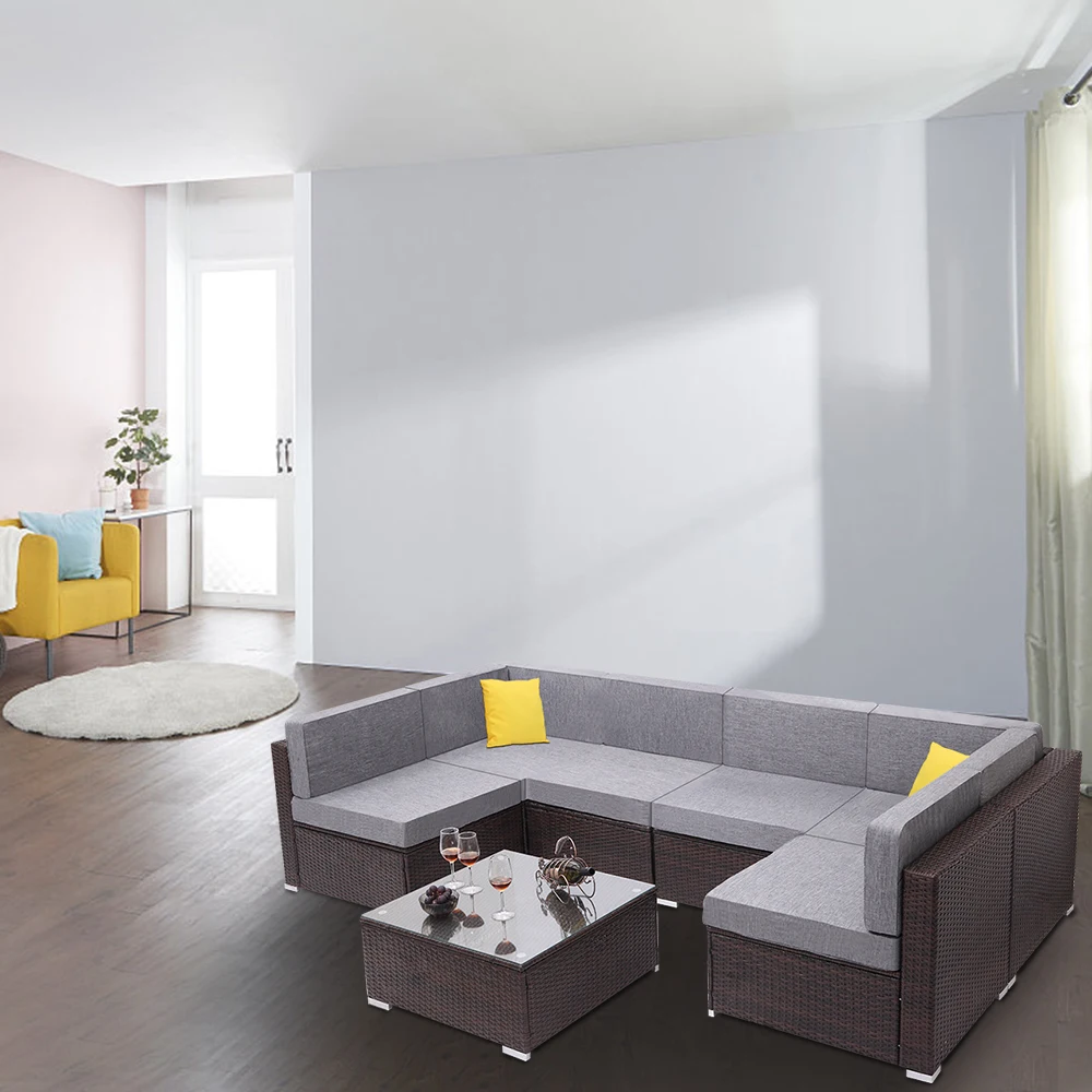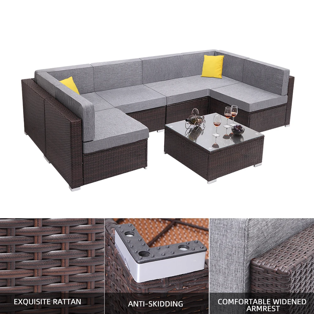 Цвет: 36465303 7 штук, патио, ПЭ, Плетеный ротанг, угловой диван