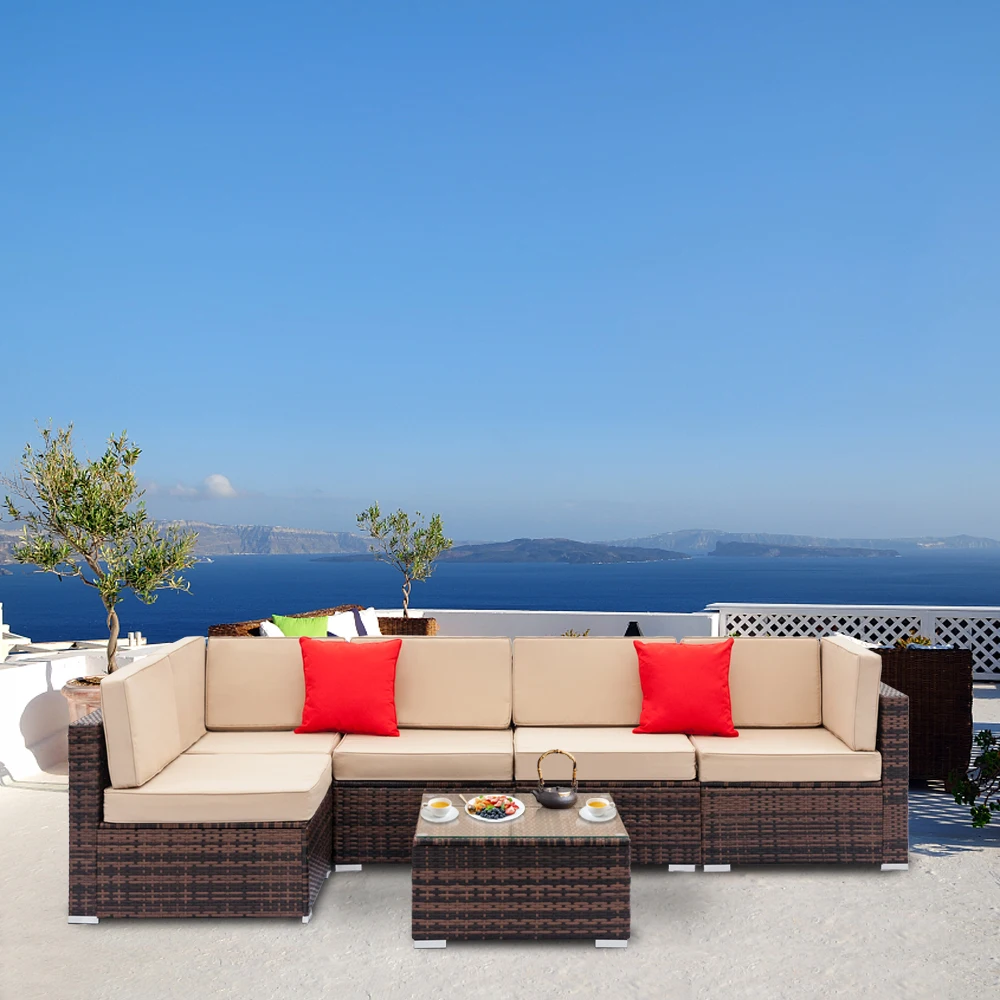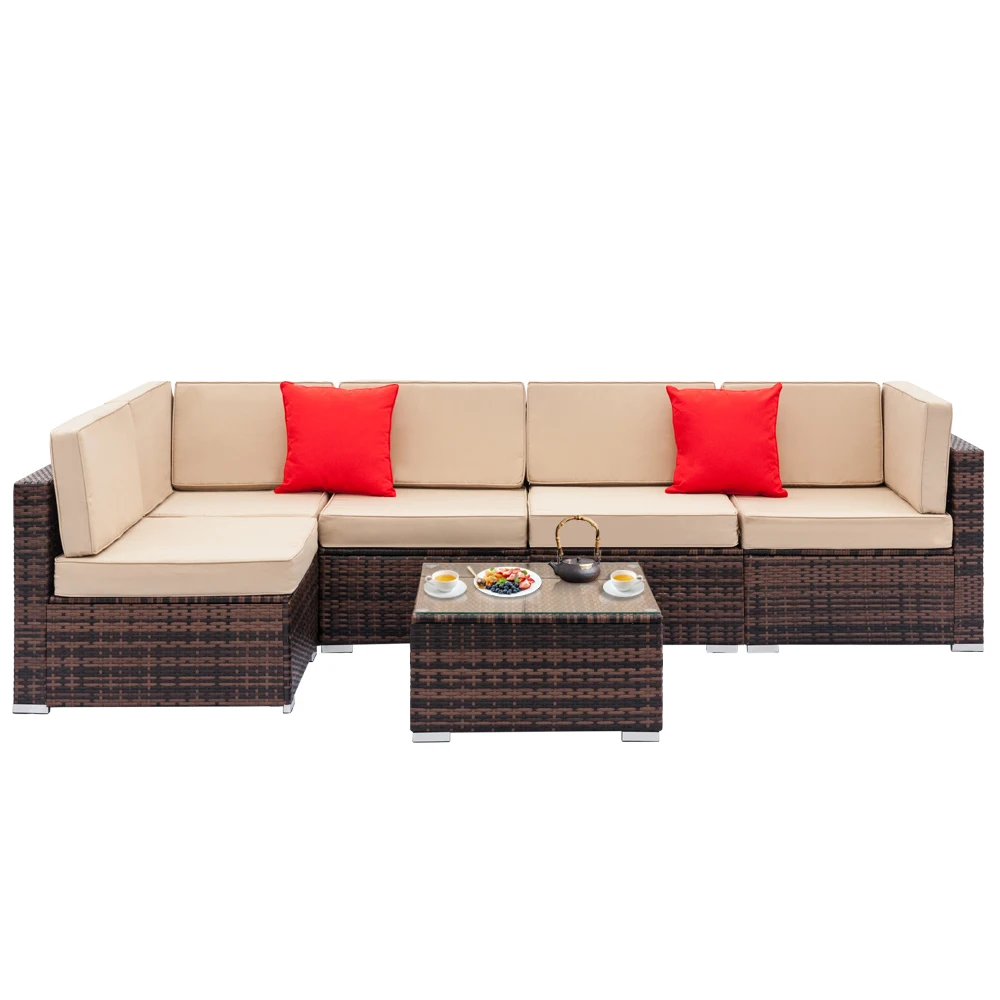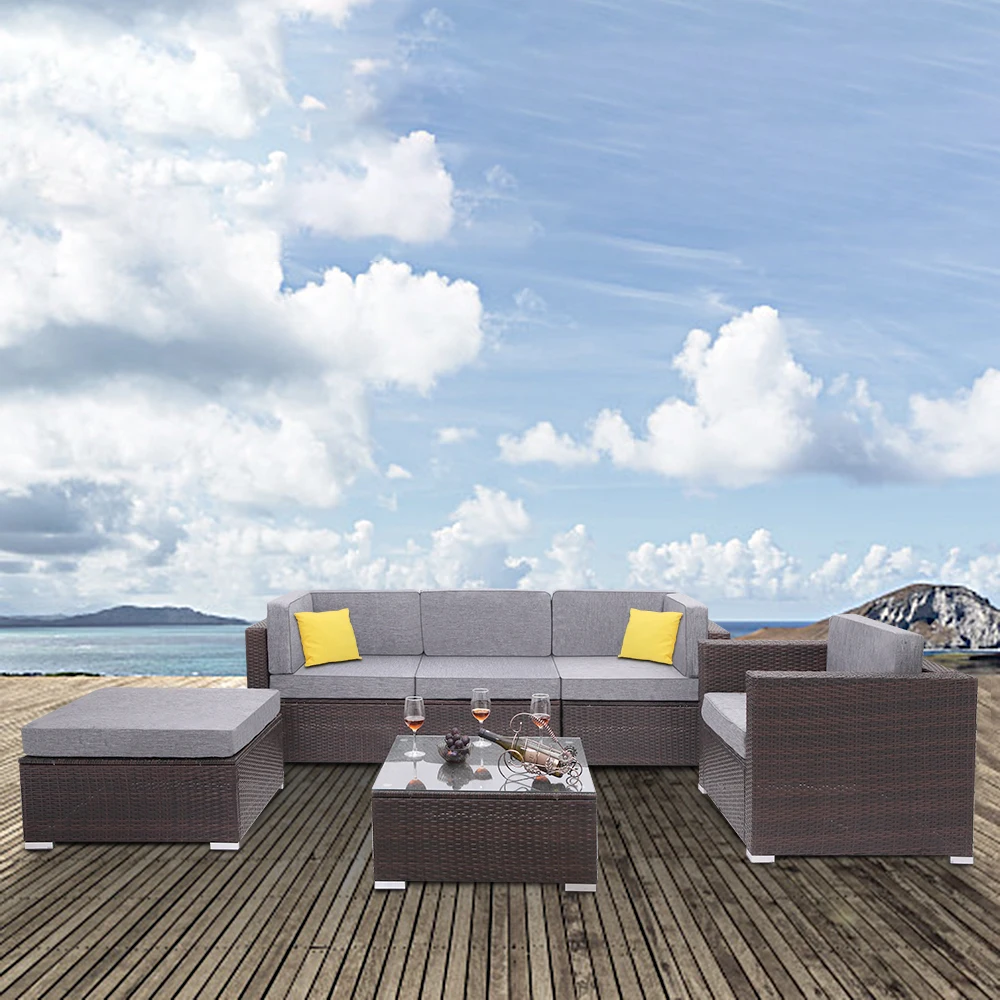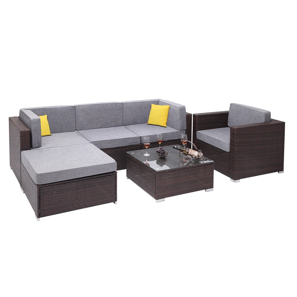 Цвет: полностью оснащенный плетеный диван из ротанга, 72522264, с 1 угловыми диванами, 4 одиночными диванами, 1 кофейный столик с коричневым градиентом