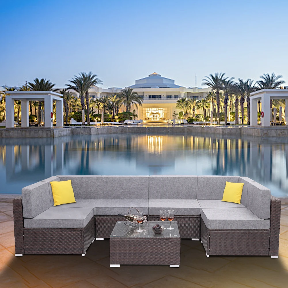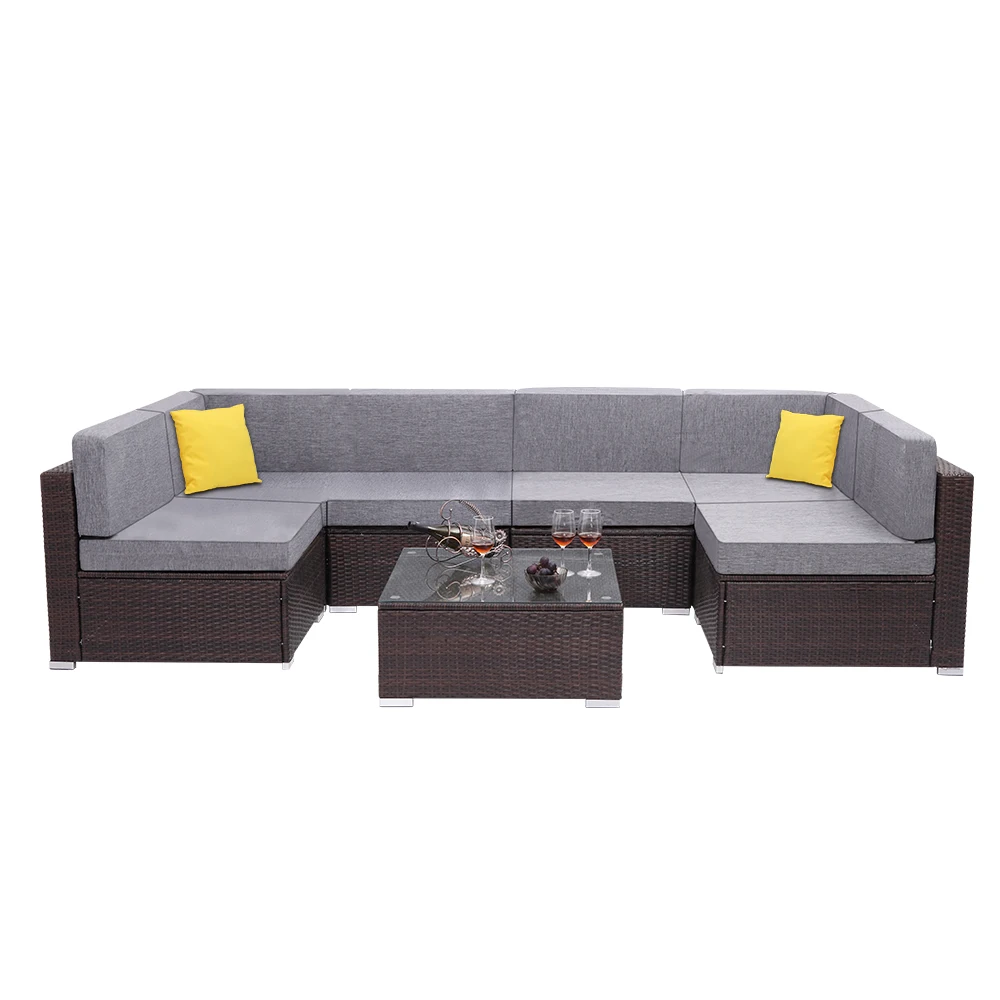 Цвет: полностью оснащенный плетеный диван из ротанга, 54356658 с 2 угловыми диванами, 3 одиночных дивана, 1 кофейный столик с коричневым градиентом