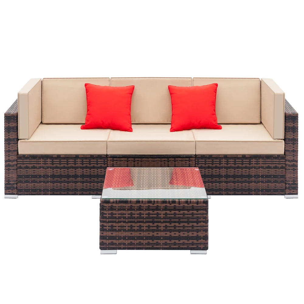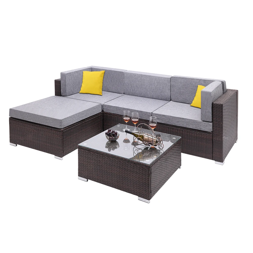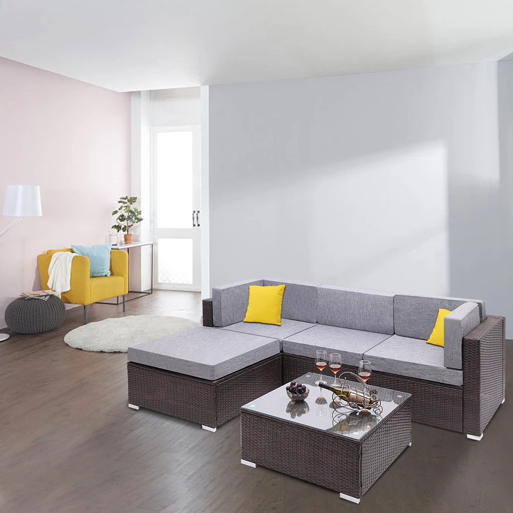Цвет: полностью оснащенный плетеный диван из ротанга, 49727434, с 2 угловыми диванами, 1 одиночными диванами, 1 кофейный столик с коричневым градиентом