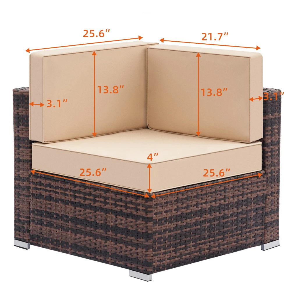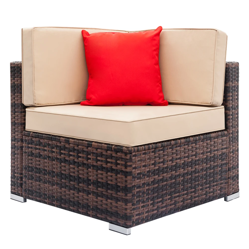Цвет: полностью оснащенный диван из ротанга, 31381746, с 2 угловыми диванами, 2 одиночных дивана, 1 кофейный столик с коричневым градиентом