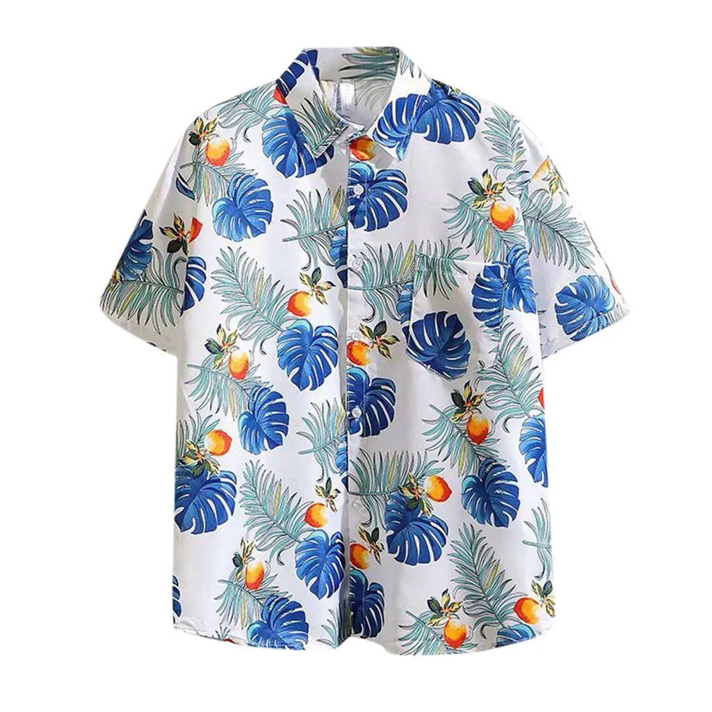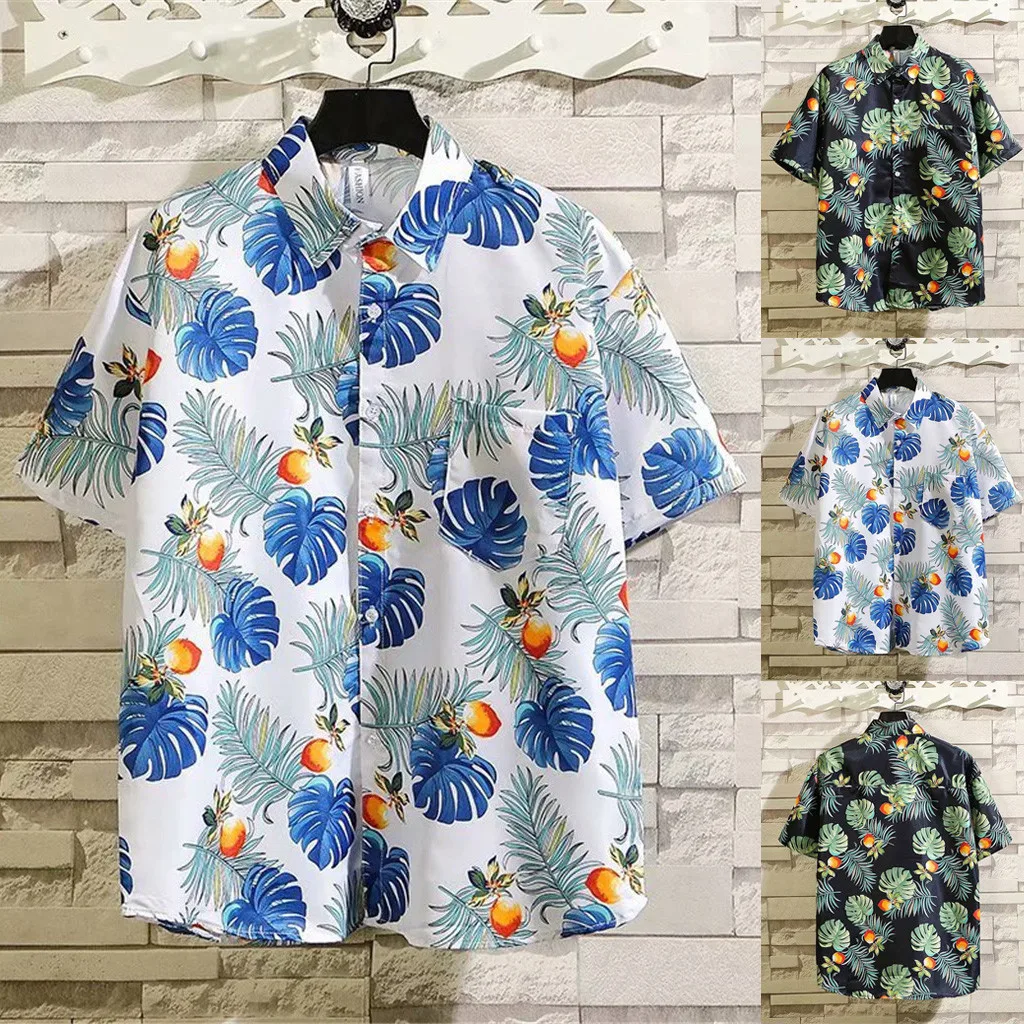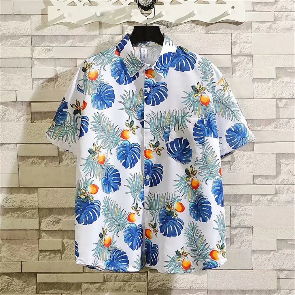 Мужская модная гавайская рубашка с коротким рукавом и принтом Повседневная рубашка с отворотом