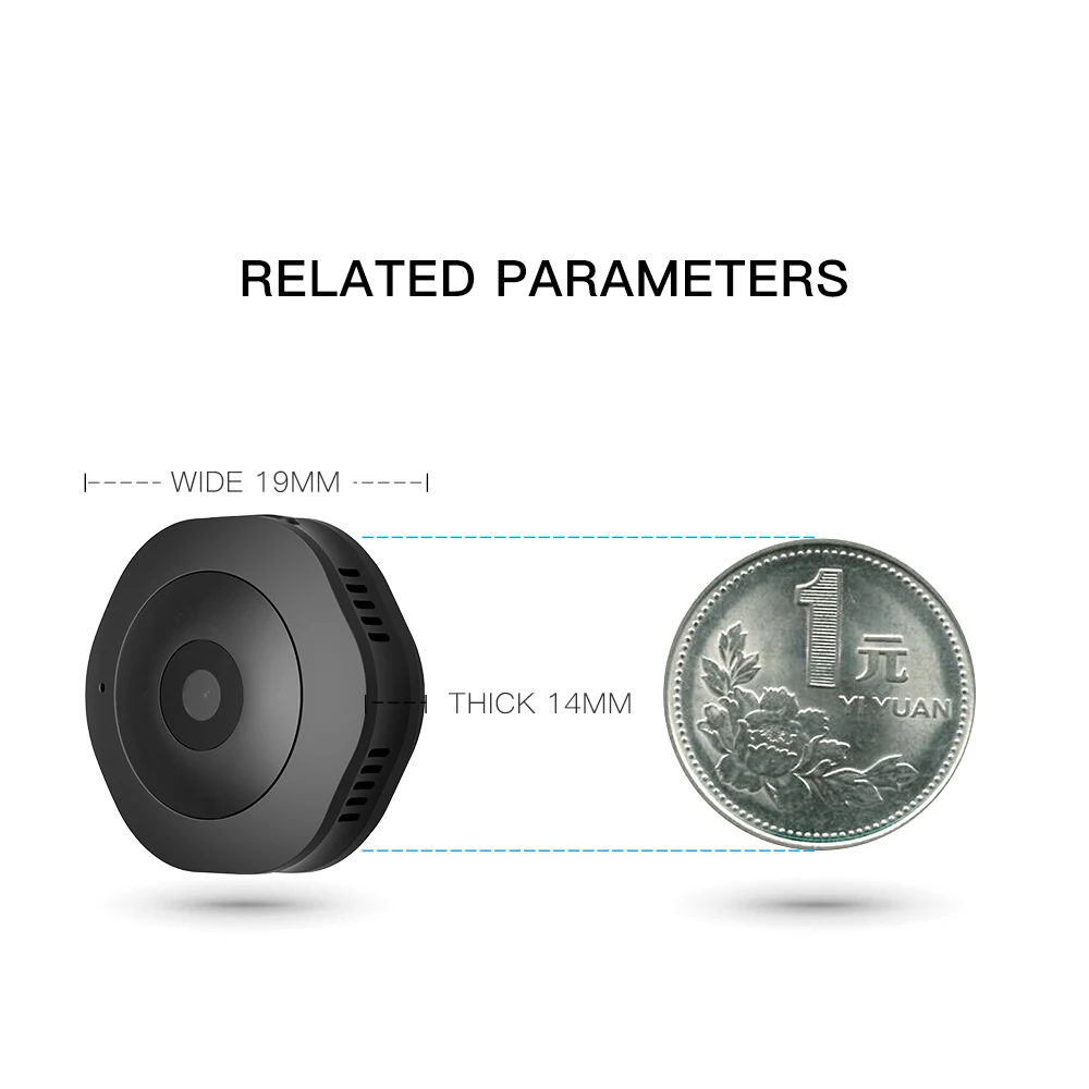 Размер продукта: 38 38 × 14 мм Угол: 90 градусов Аккумулятор: встроенный 320 мАч перезаряжаемый литиевый аккумулятор Хранение: 32G Micro SD карта Разрешение видео: HD 720P | 1080P Разрешение фото: 4032*3024