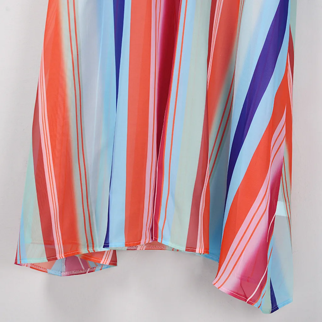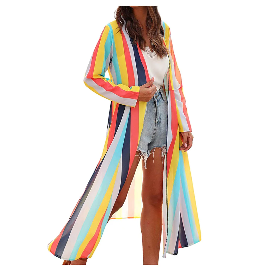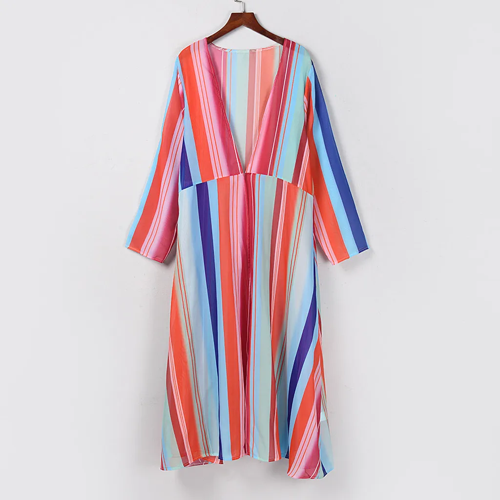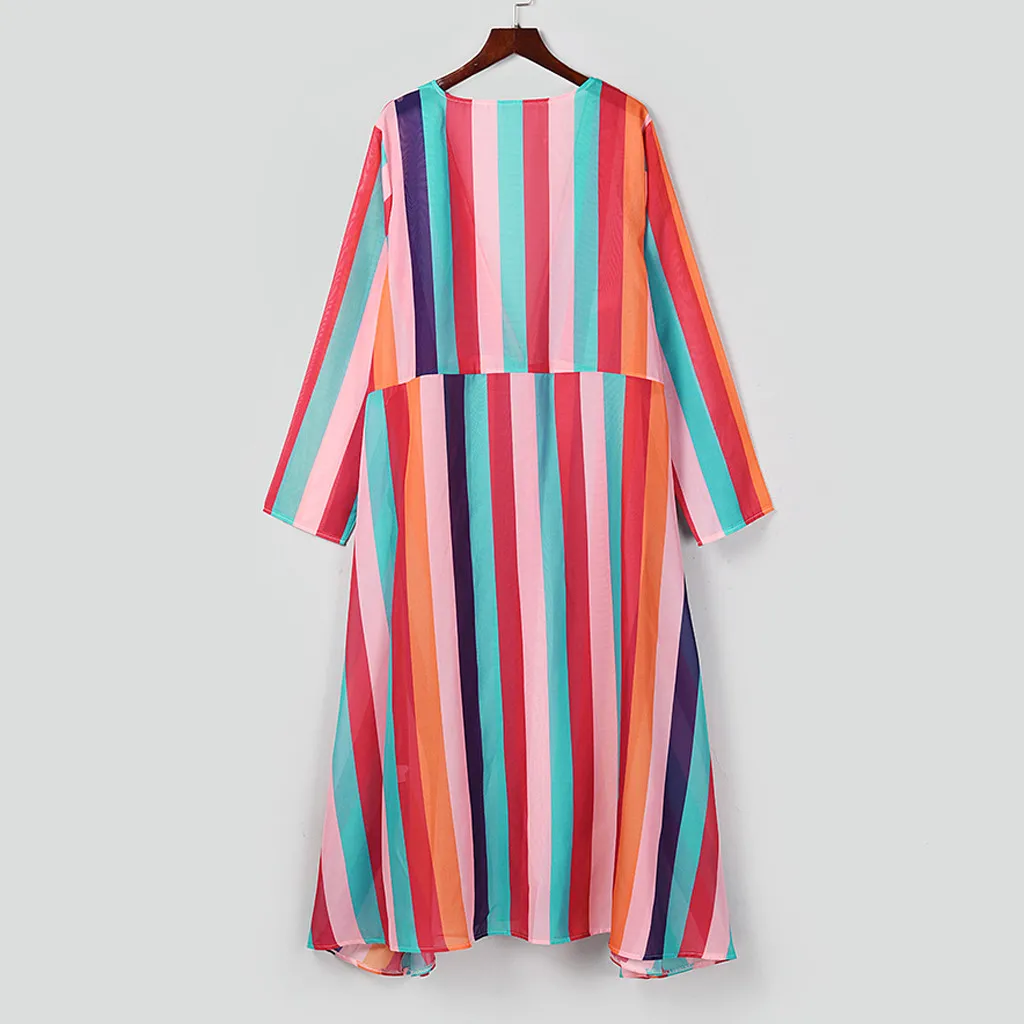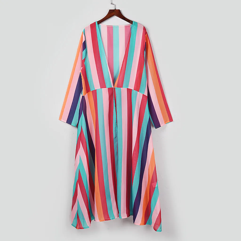 Женская пляжная одежда многоцветная полосатая накидка кафтан пляжный женский купальник платье туники женский халат de Plag купальный костюм