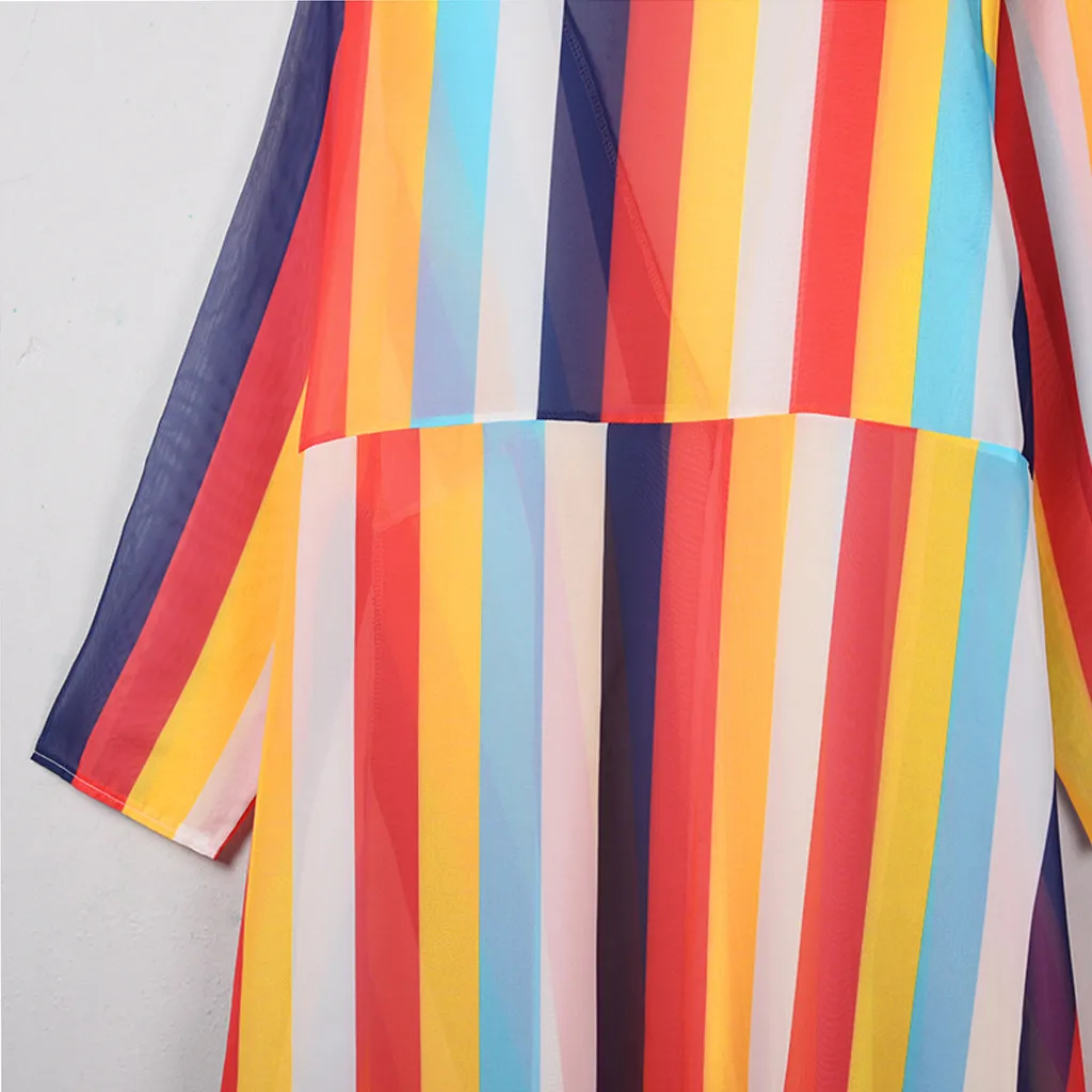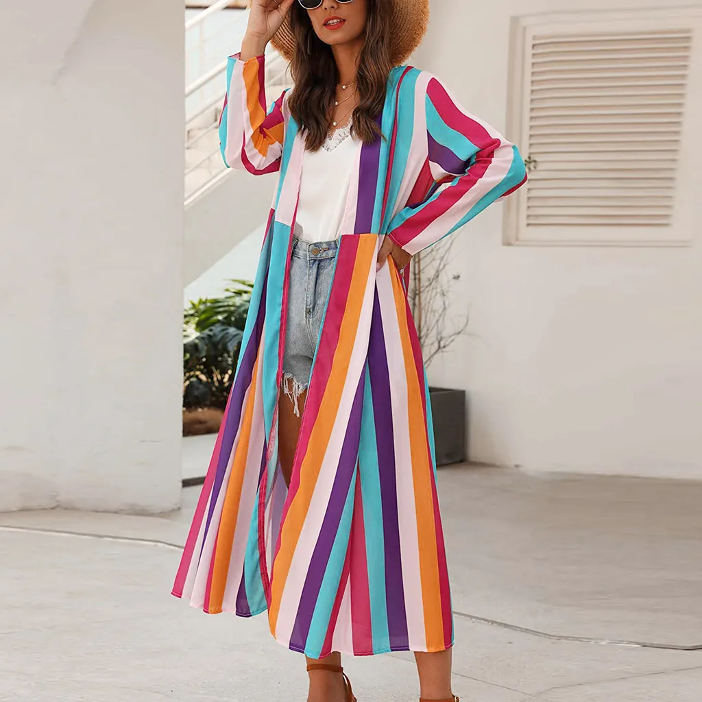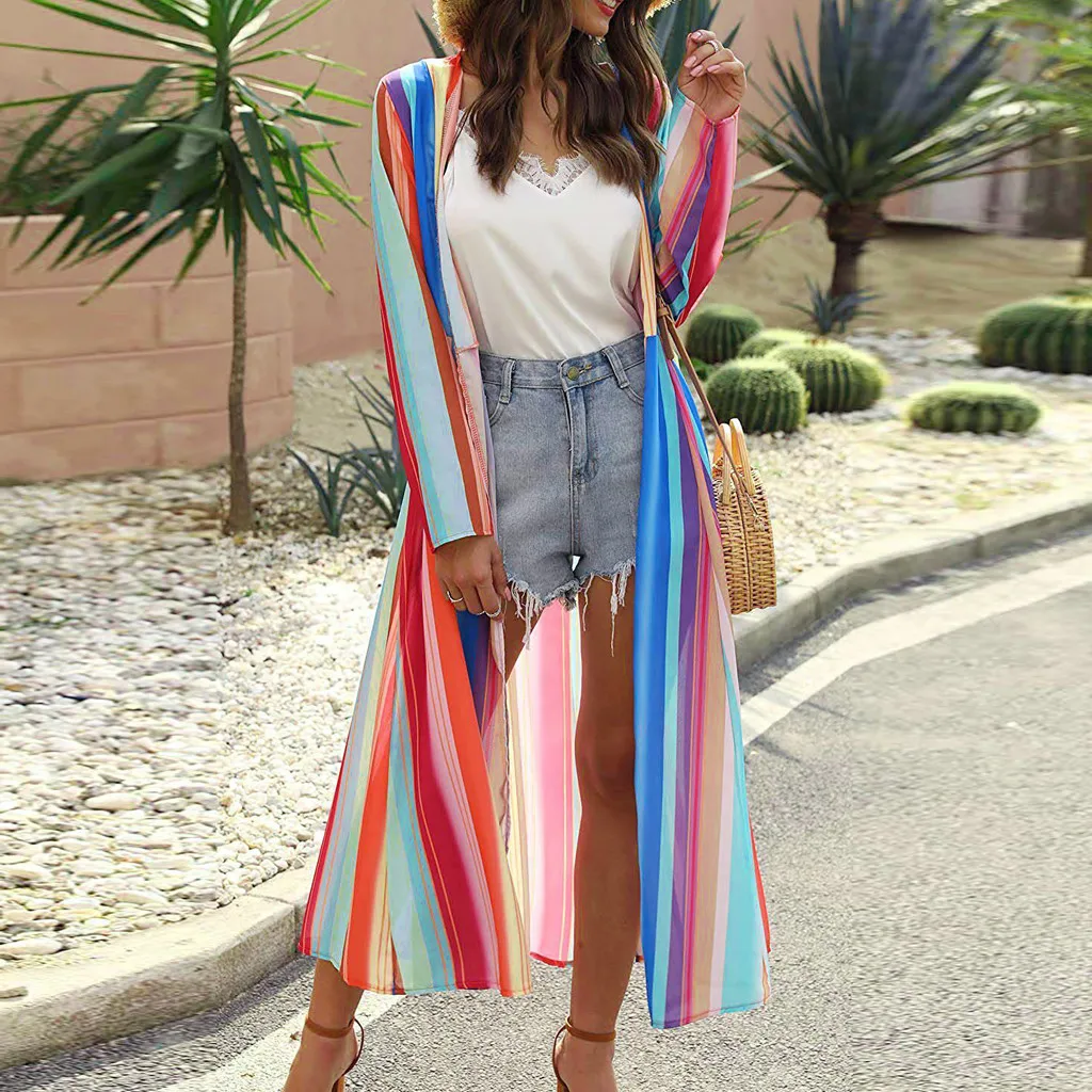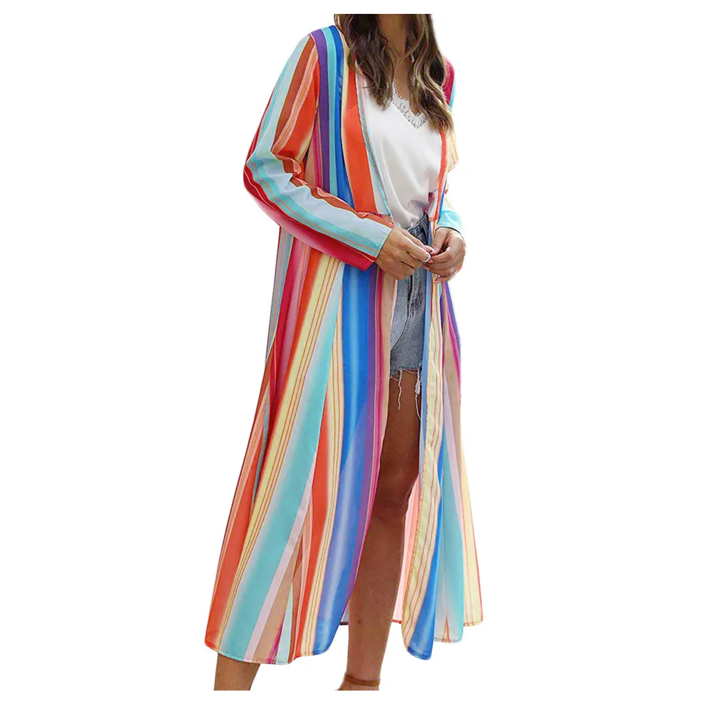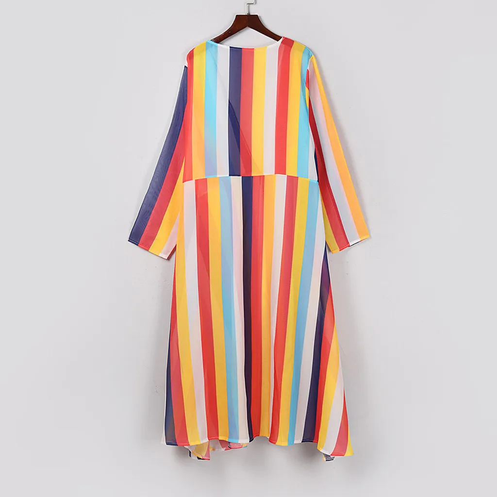 Женская пляжная одежда многоцветная полосатая накидка кафтан пляжный женский купальник платье туники женский халат de Plag купальный костюм