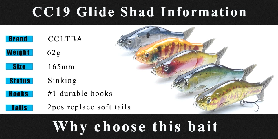 CCLTBA 3 шт./лот воблеры для доставки прикорма и оснастки 16,5 см 62 г Glide шарнирная приманка Искусственная резина хвост Шад приманка рыболовные снасти