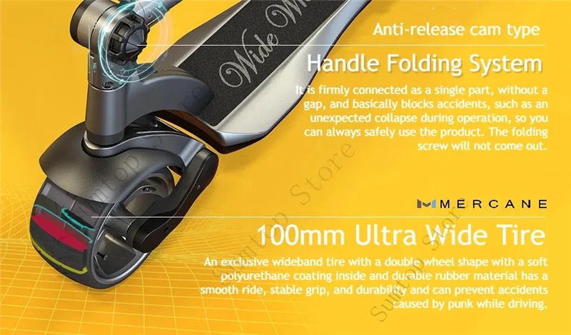 Ультра-широкие шины и соединительный Тип подвески, адаптированные к Widewheel, обеспечивают сбалансированную езду, что мотоцикл предлагает только без ущерба для портативной функции, которую может похвастаться электрический скутер. Спасибо за эти замечательные особенности. Вы испытаете максимальное удовольствие от езды, которое вы никогда не совершали с существующими электрическими скутерами. Более мощное вождение. Плавное и безопасное вождение.