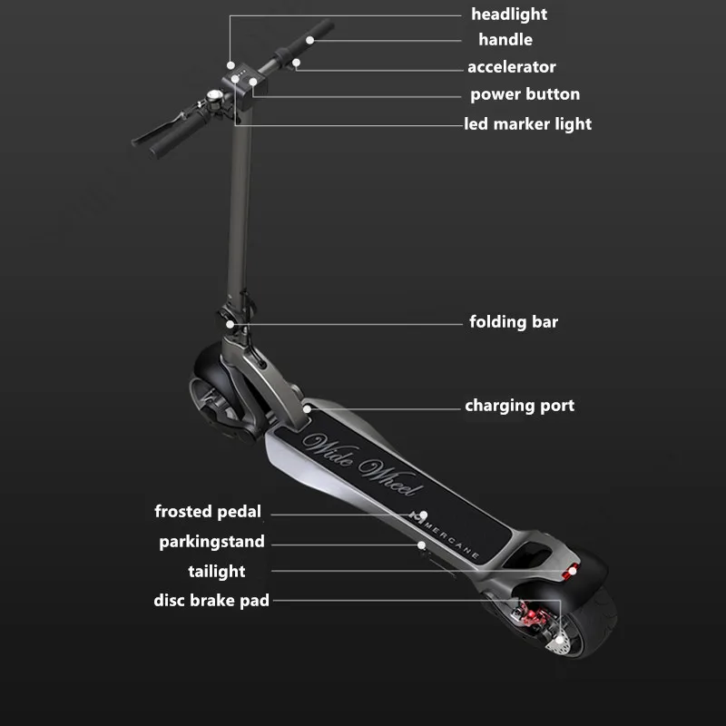 1. С высокой мощностью 48v 500w BLDC мотор для центрального движения и восхождение Хилл крутящий момент. 2. Две независимые системы подвески обеспечивают непревзойденный комфорт при езде. 3. Широкие шины ever (ширина 100 мм), чтобы предложить лучший опыт езды. 4. Легкий и твердый алюминиевый Магниевый сплав колеса. 5. Тормозная система со встроенным 120 мм широким Тормозным Диском. 6. Универсальный компактный дизайн. 7. Самое передовое рулевое колесо. 8. Высокая эффективность литий-ионный аккумулятор.