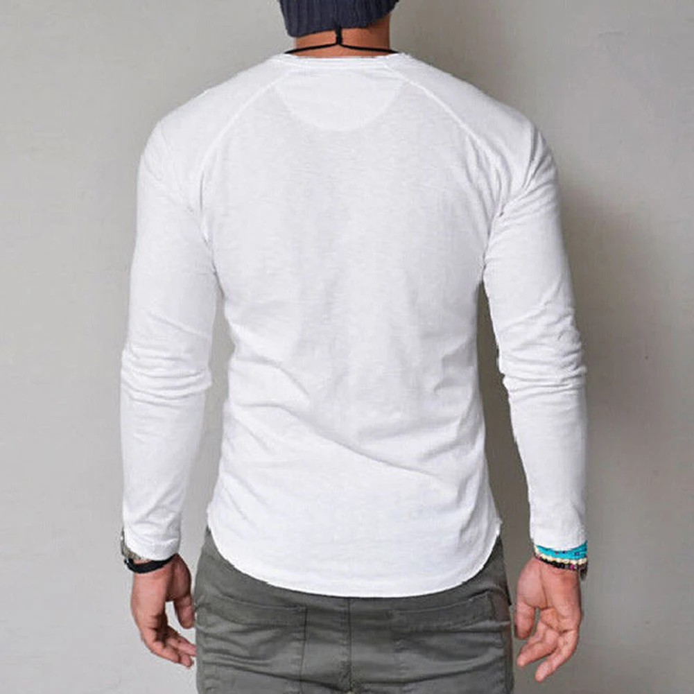 Мужская повседневная Однотонная футболка с круглым вырезом и длинным рукавом размера плюс