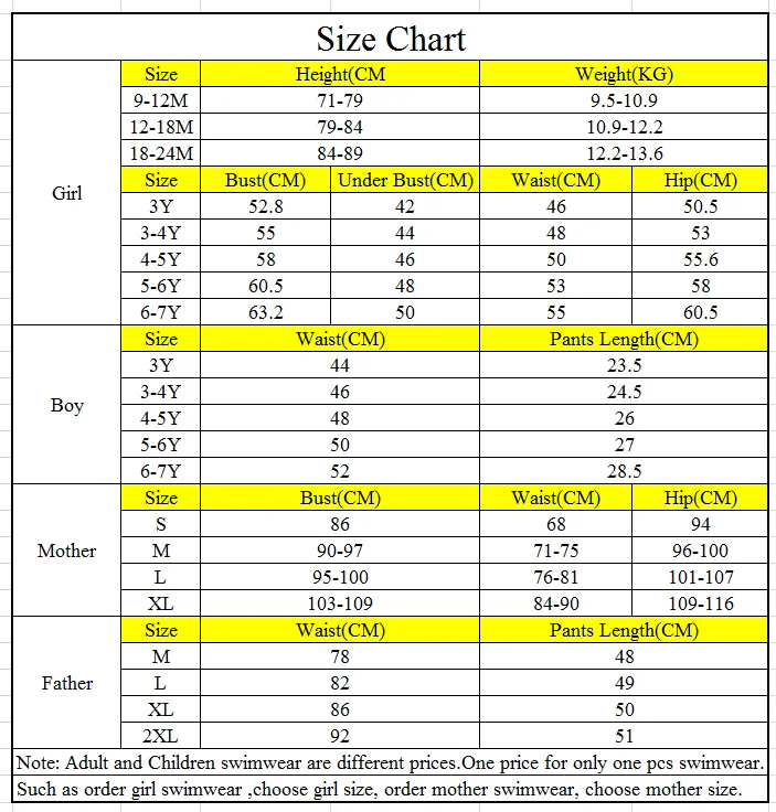 Если вы выбираете размер для девочки, это цельный купальник для девочки, если вы выбираете размер для мальчика, это цельный купальник для мальчика, если вы выбираете размер для мамы, это цельный купальный костюм для мамы, если вы выбираете размер для папы, это цельный купальный костюм для папы. Если вам нужен полный комплект для вашей семьи, пожалуйста, добавьте каждый размер в корзину и купите его.