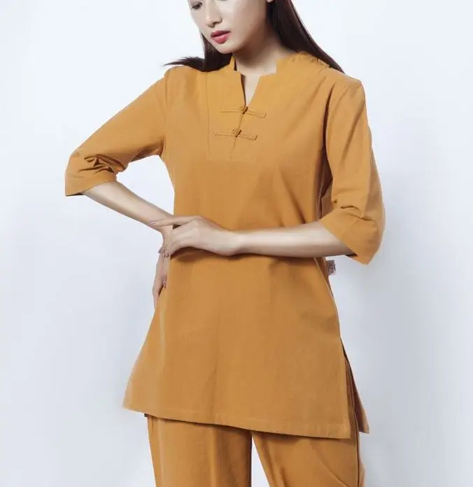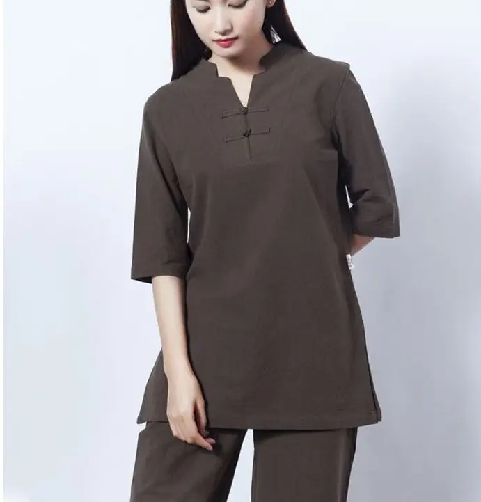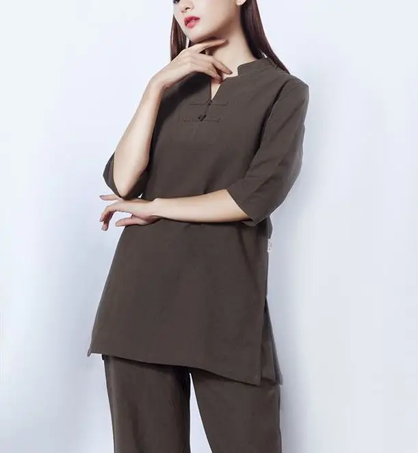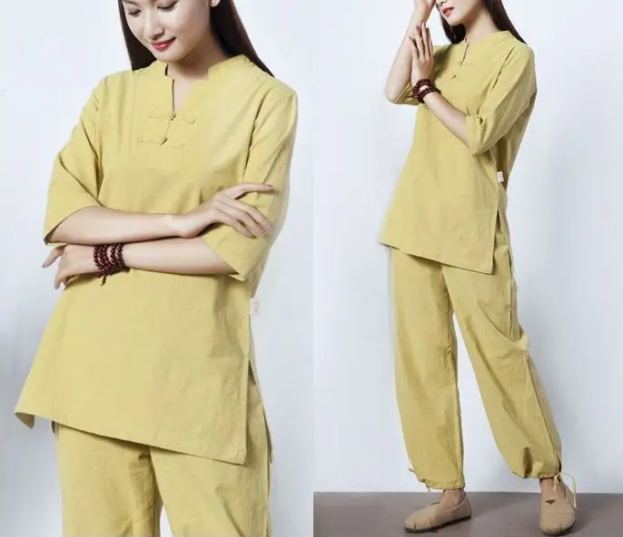 Material:High quality cotton and linen Packge including: Tops+pants Permeability is good,Moisture absorption,breathable, Bacteriostatic environmental, comfortable Suitable for Summer and Spring and Autumn wear.