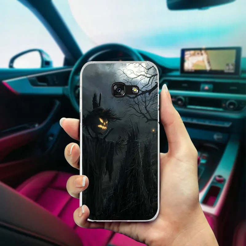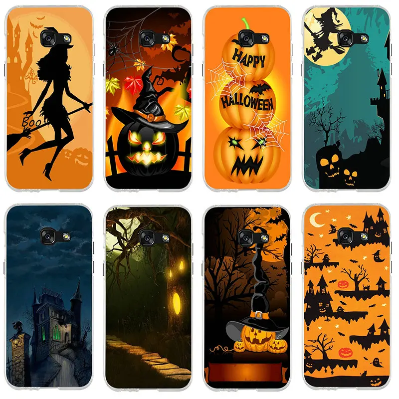 Soft Phone Case for Samsung Galaxy Note 2 3 4 5 8 9 10 A10 A20 A30 A40 A50 A60 A70 A80 A90 Happy Halloween Fabric Pumpkins Black Pattern Phone Shell Anti-knock Cover Protect Phone Case