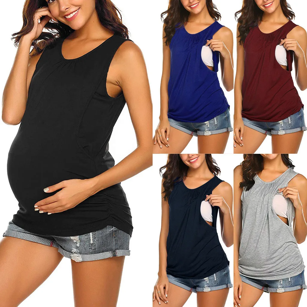 3.КруглыйШея,Без рукавов,РегулярныеДлина,Затяните на застежке,Двухслойный Топ для беременных. Повседневный и свободный.
