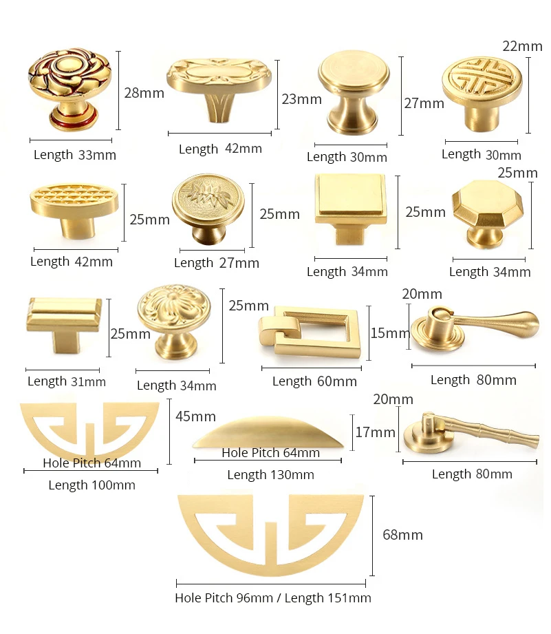 Медный латунный материал более прочный, выглядит более высококлассно, чем обычные ручки из сплава и чрезвычайно прочный