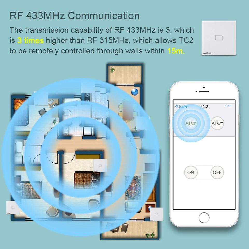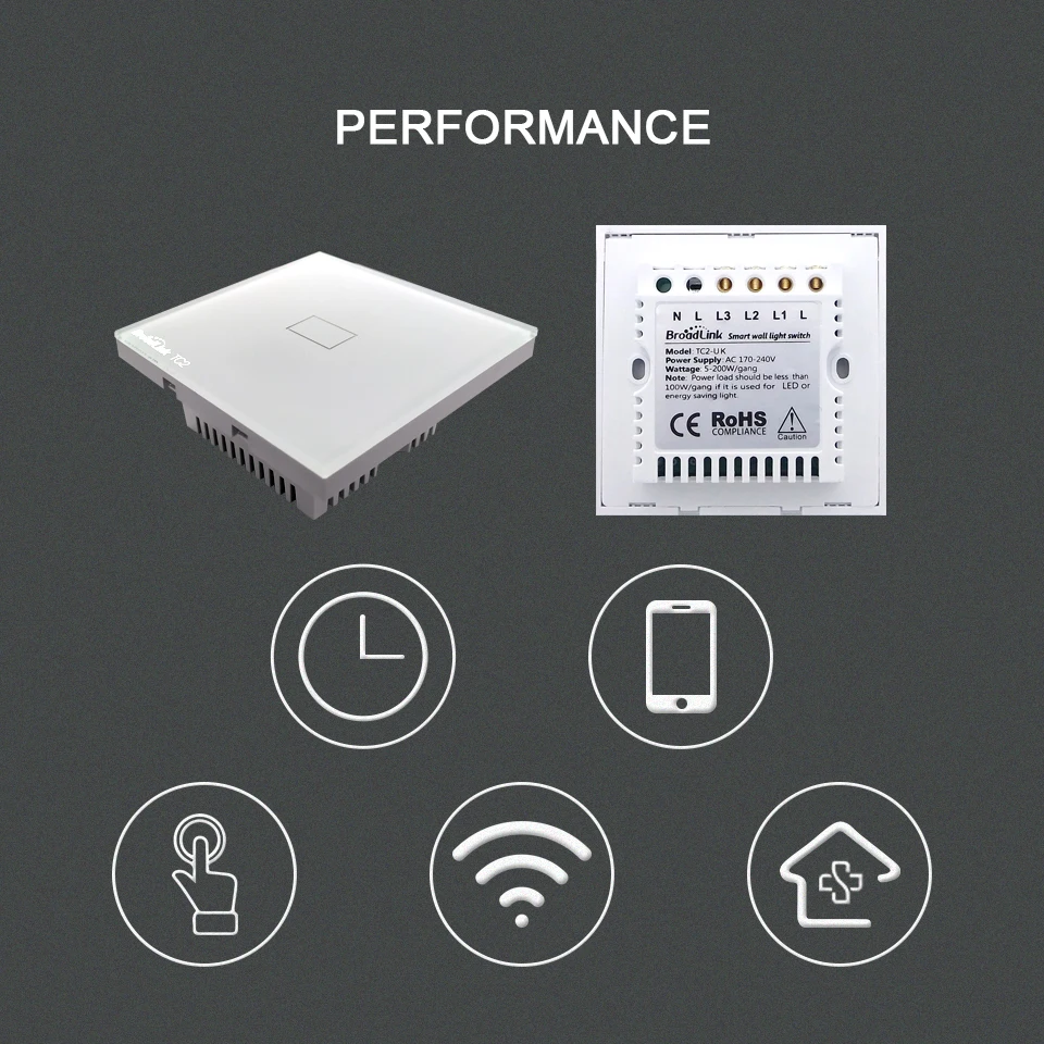 Broadlink TC2 1/2/3 Gang UK настенный сенсорный выключатель света 433 МГц Беспроводное управление через RM Pro RM4 Pro для автоматизации умного дома