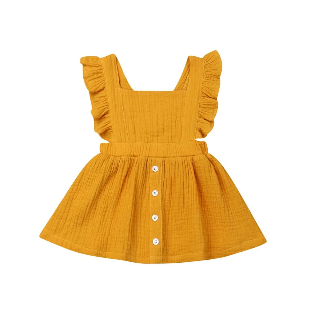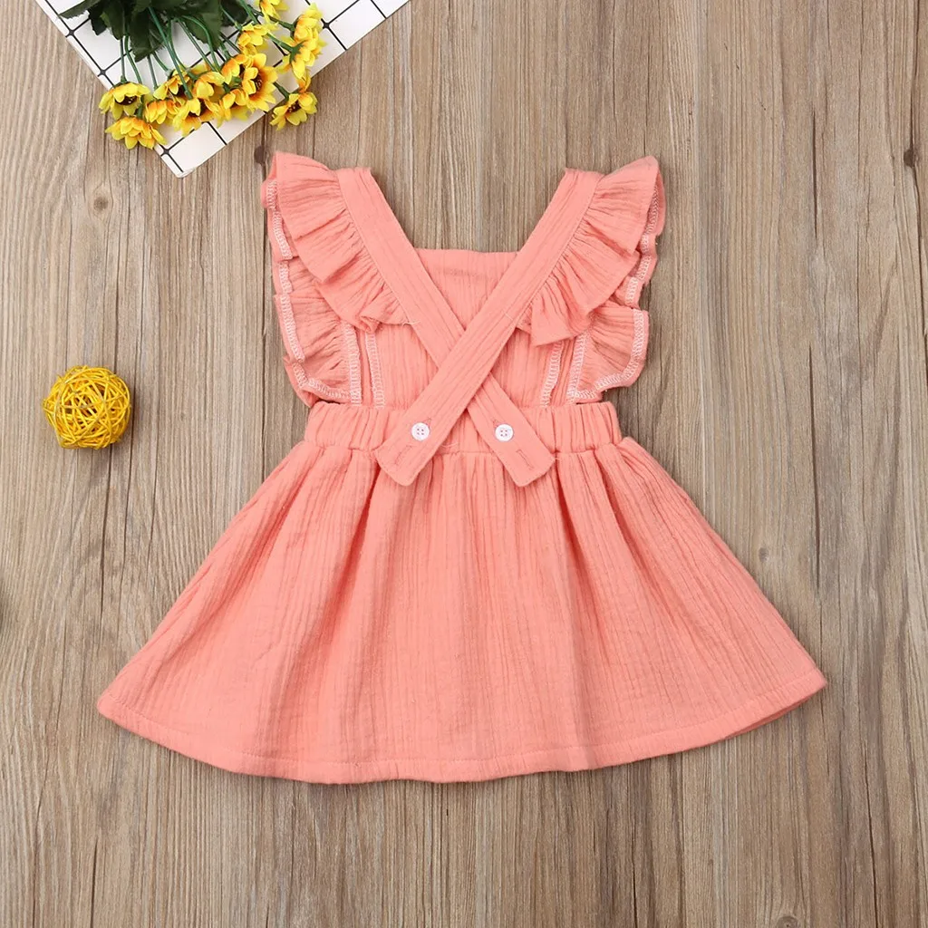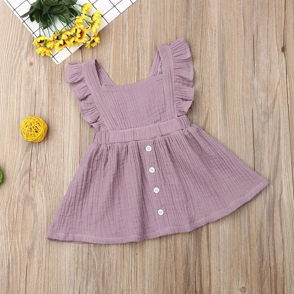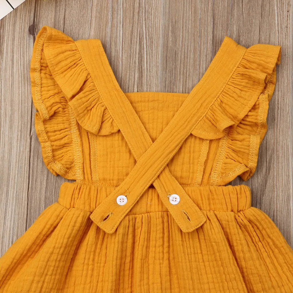 Милое однотонное Хлопковое платье с рюшами и рукавами-крылышками для маленьких девочек