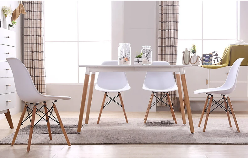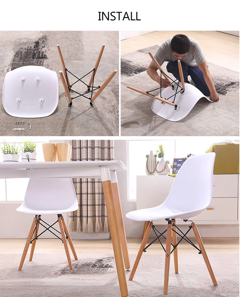 Современное простое боковое кресло с ножками из натурального дерева, пластиковое сиденье для кухни, гостиной, столовой, домашней мебели Простота этих классических деревянных стульев с акцентом увеличит вашу комнату Изготовлен из прочного пластика АБС-пластика, отлитого под дерево Эргономичная форма и изогнутое сиденье обеспечивают максимальный комфорт Ножки деревянные, включая стальные детали Пластиковые наконечники ножек защищают чувствительный пол Материал: бук, АБС-пластик, сталь Размер: как показано на рисунке ниже Посылка включает в себя: 1 х современный боковой стул