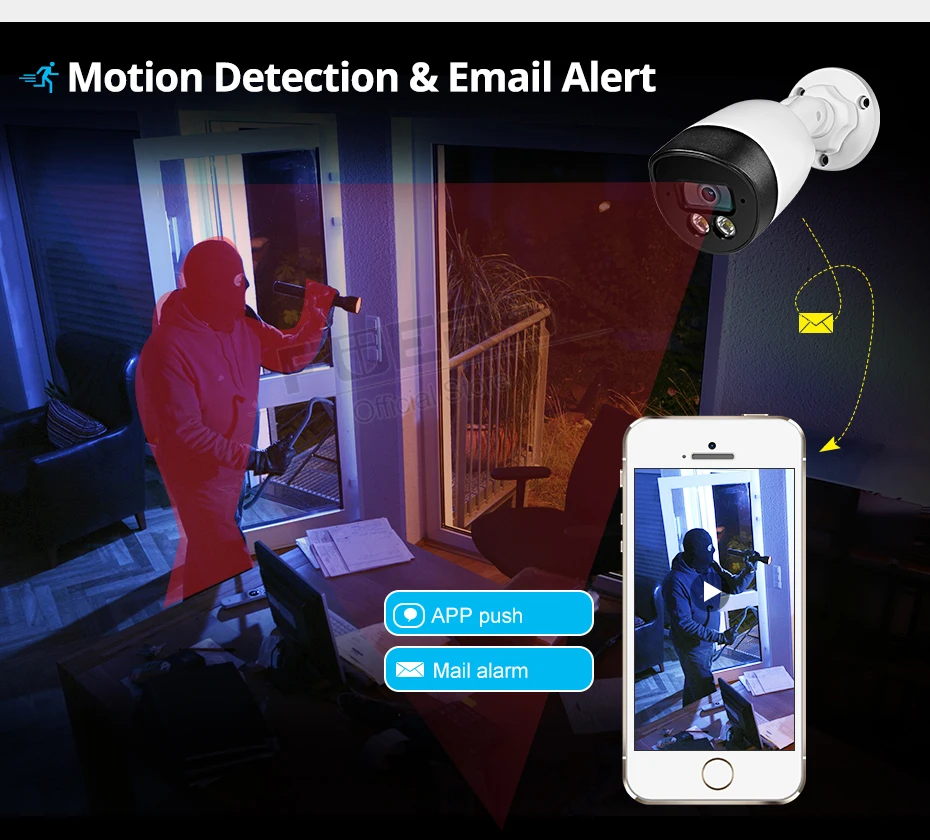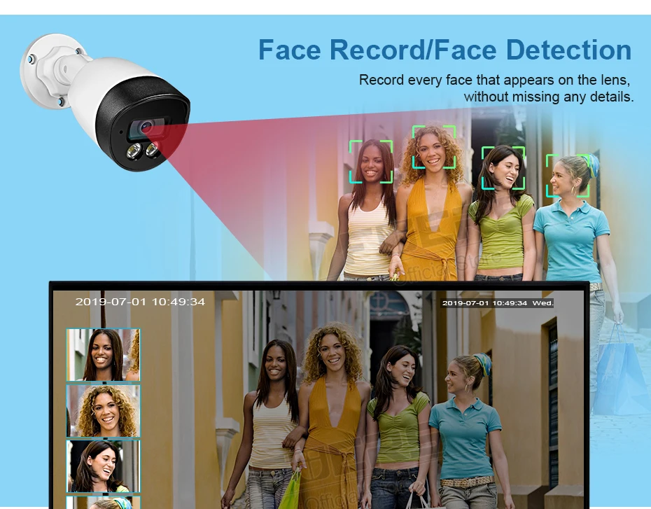 1. Обнаружение лиц AI, без утери каких-либо деталей 2. Все камеры оснащены встроенным микрофоном и динамиком, Поддержка двусторонней записи звука 3. 2 шт. белый светодиодный светильник, при обнаружении движущегося объекта, 2 светодиодный s будет светильник