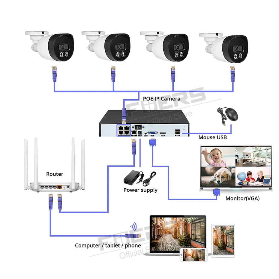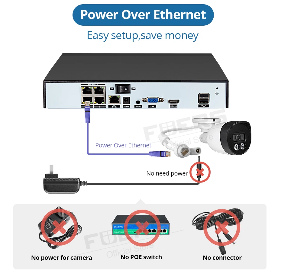 Не требует дополнительных силовых кабелей, адаптеров или переключателей. Plug And Play и простая настройка. Экономный и удобный, POE NVR = переключатель NVR + POE