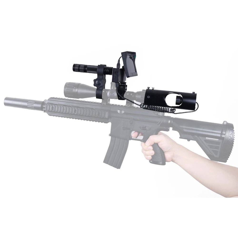 1. Закрепите дисплей и ИК-светильник на оптическом прицеле с помощью трубного зажима.