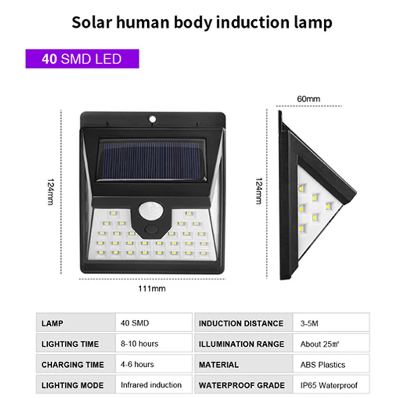40 светодиодный Солнечный сад огни безопасности движения на открытом воздухе Сенсор солнечной энергии светодиодные лампы для стены забор отделки стен ванной Водонепроницаемый