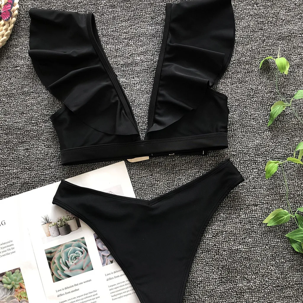 Женский Привлекательный бюстгальтер пуш-ап с V-образным вырезом и вкладышами, пляжный комплект бикини, купальник, купальники