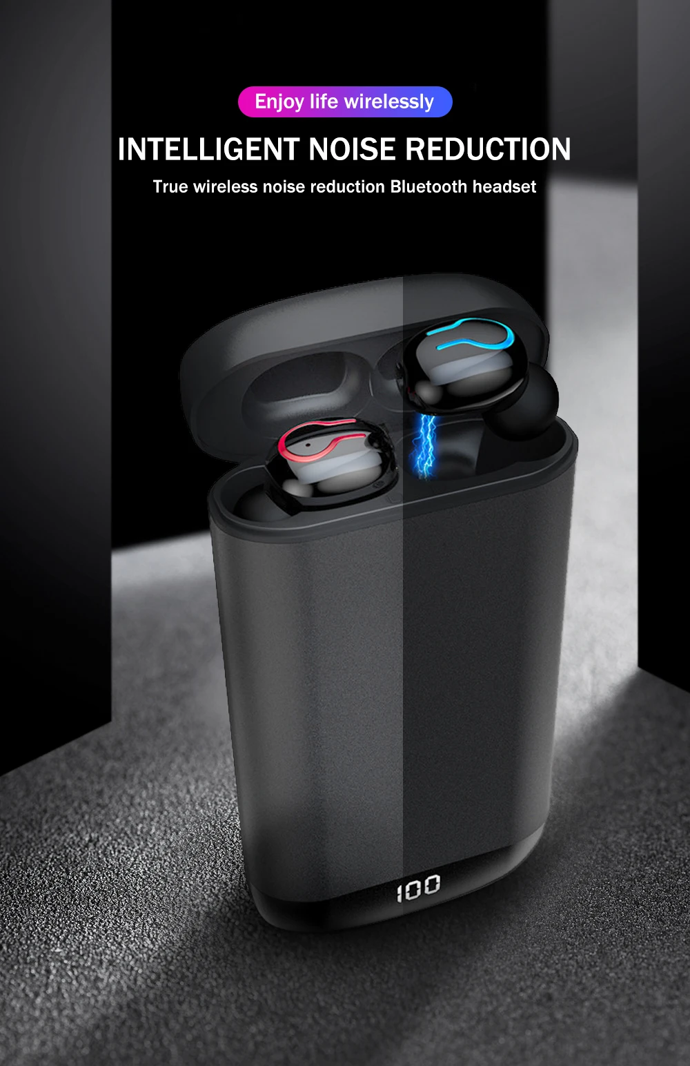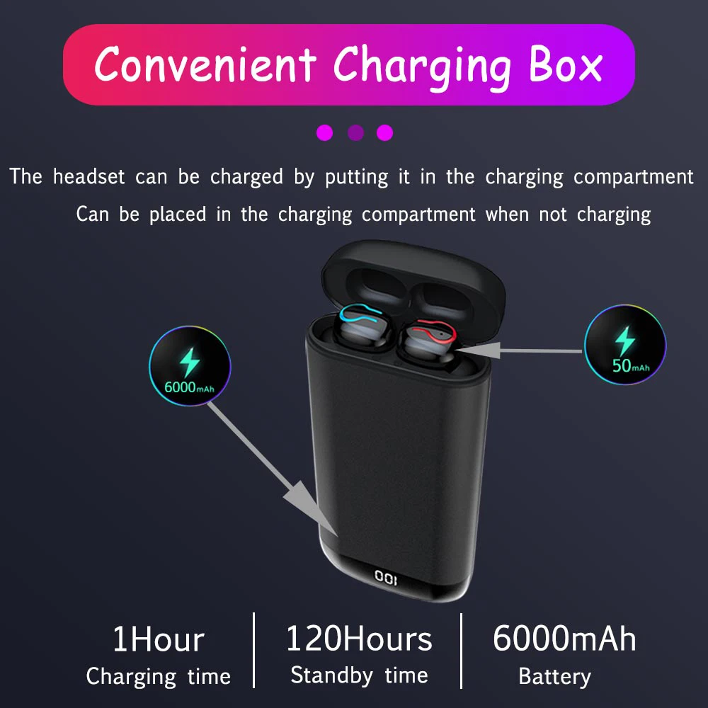 1. Извлеките наушники влево и вправо (LR) из зарядный чехол. Уши будут автоматически включаться и подключаться (красный и синий светильник мигает отдельно).