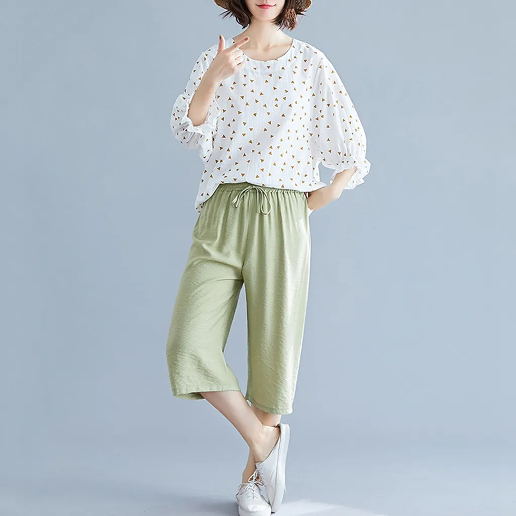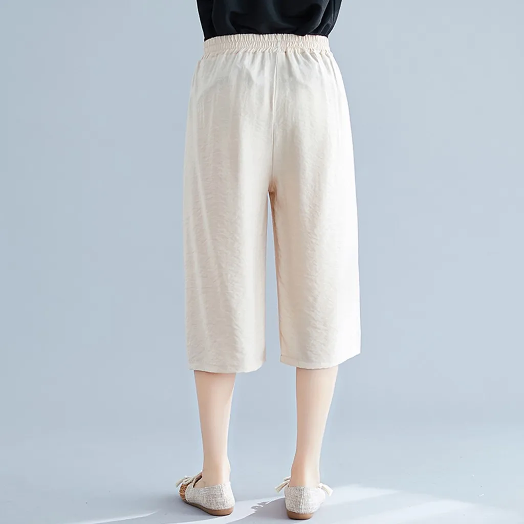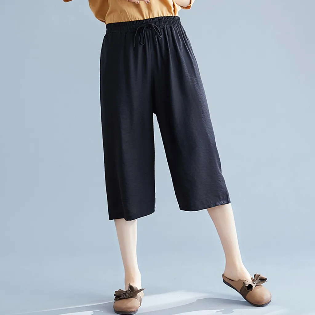 Women's Fashion Solid Color Frenum Pants Wide-Leg Cropped Trousers