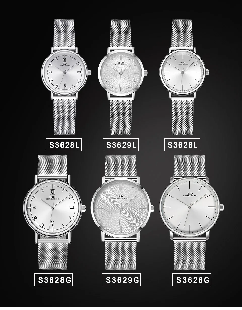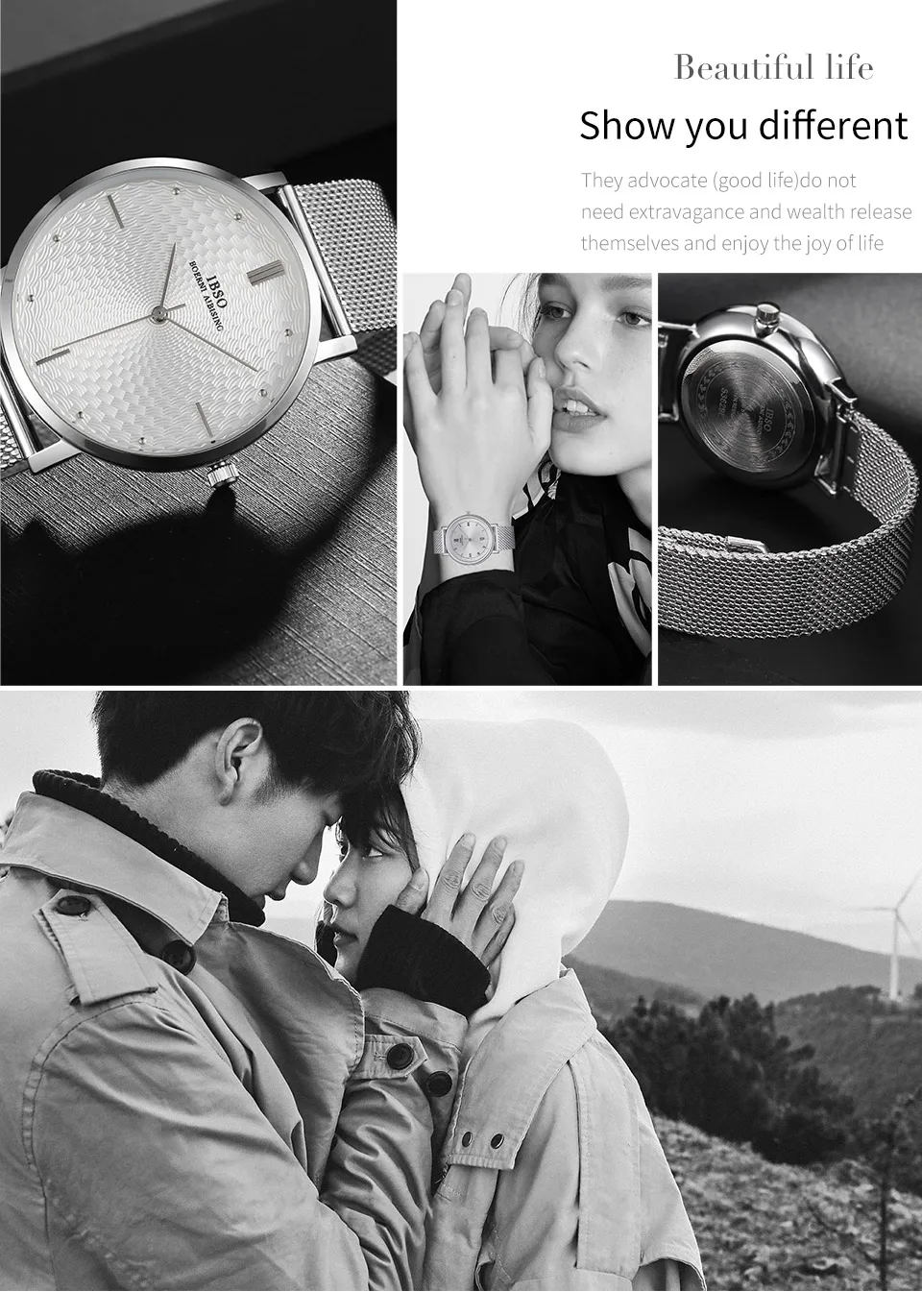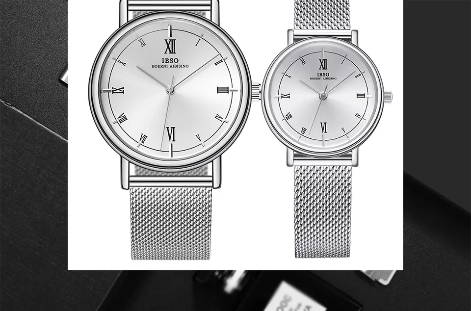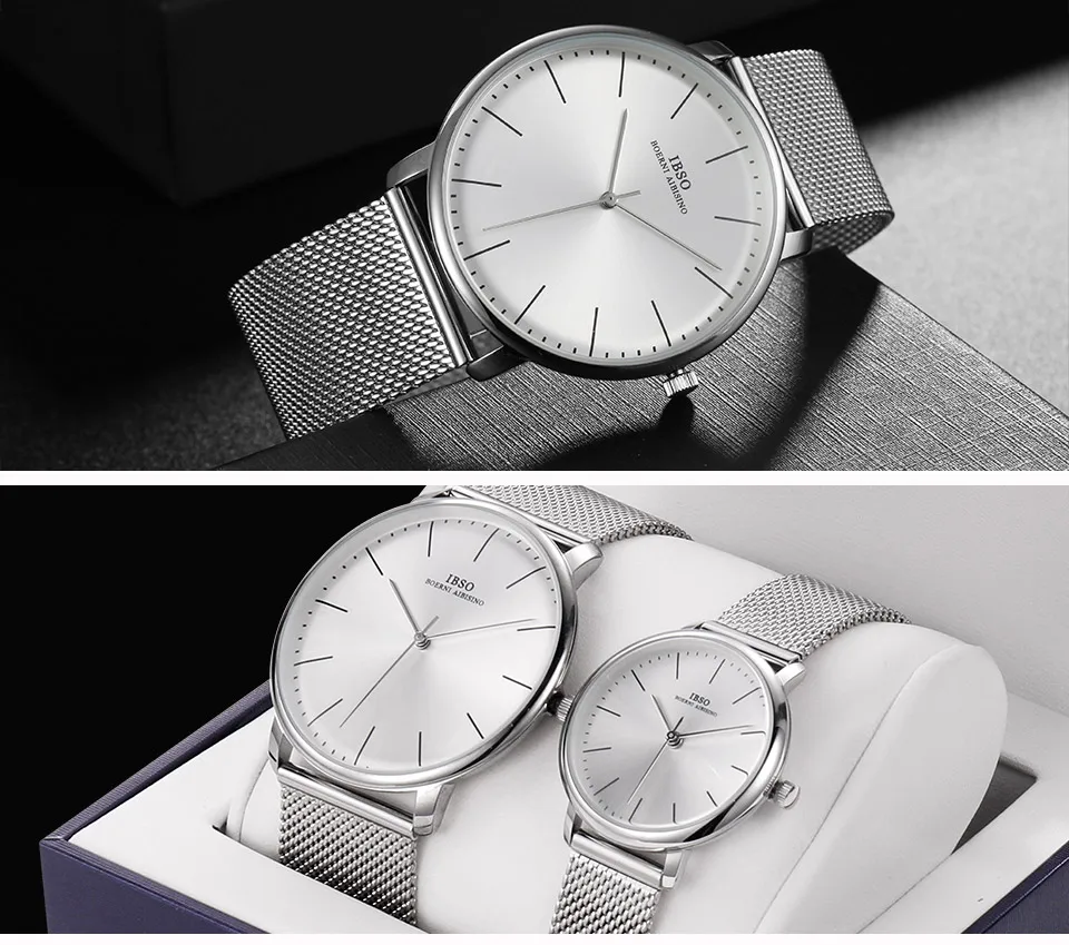 IBSO парные часы набор 8 мм модный стиль подарок 2020 Кварцевые водонепроницаемые часы лучшие продажи серебряный цвет для мужчин и женщин