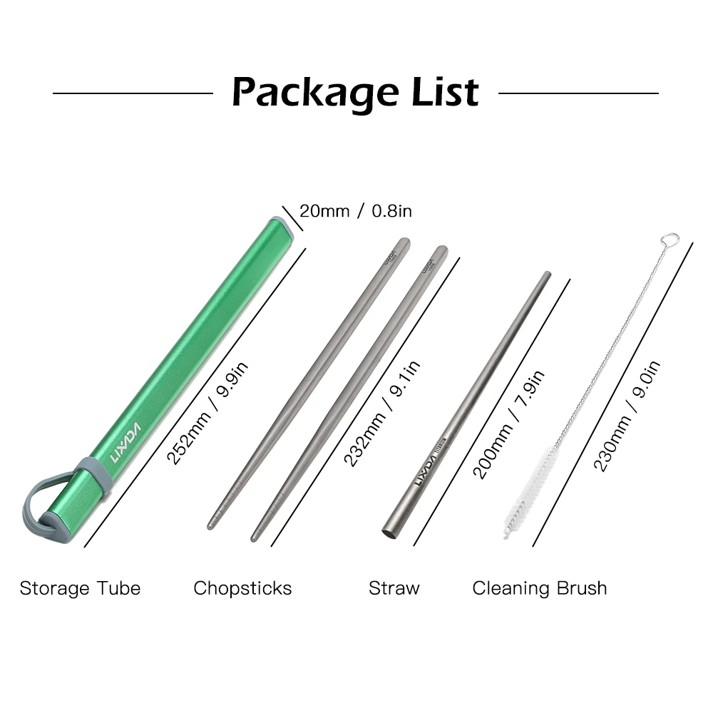 Этот набор инструментов для улицы включает в себя пару палочек для еды, питьевую соломинку и чистящую щетку, которые хранятся в алюминиевой трубке для хранения для удобной переноски, отлично подходят для кемпинга, пеших прогулок, альпинизма, путешествия и другие виды деятельности.