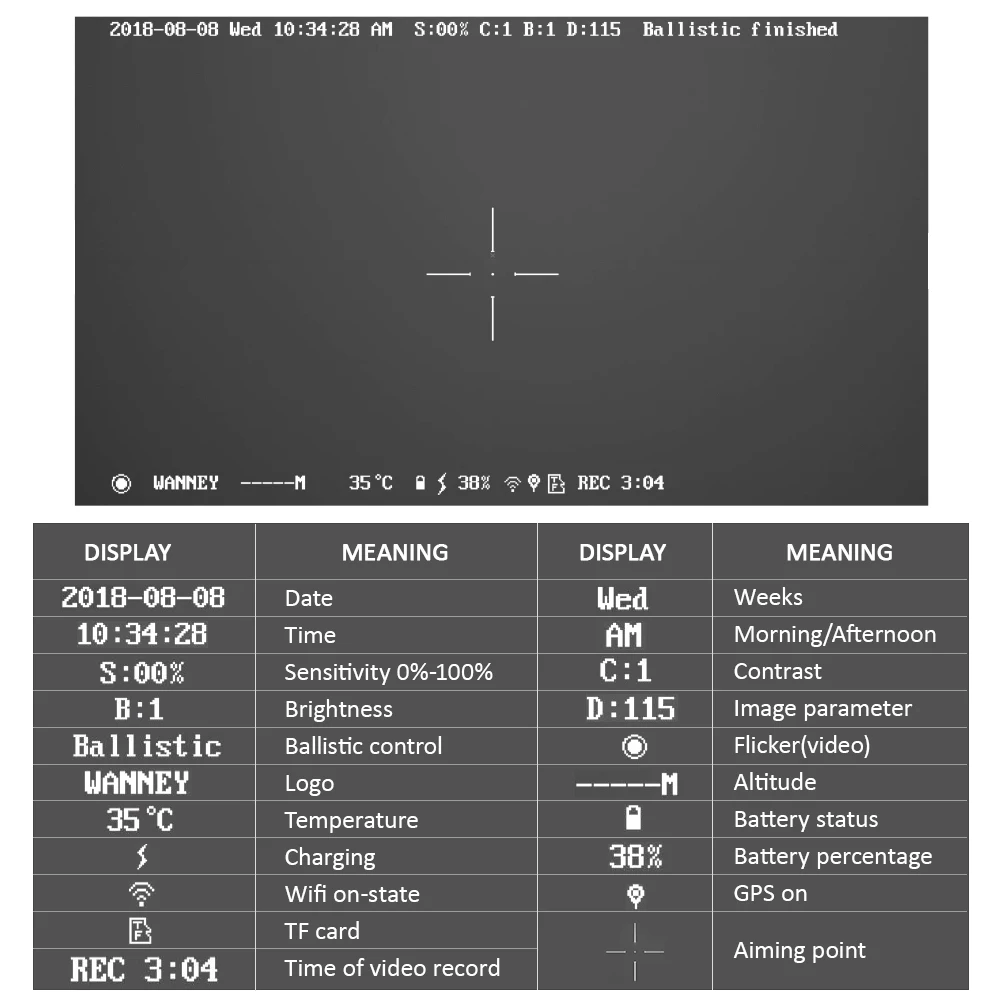Баллистические вычисления: Встроенный гироскоп вычисляет угол наклона и имеет баллистический коэффициент, баллистическую модель, калибр пули, скорость морды, вес пули, целевой диапазон, скорость ветра и относительная влажность, чтобы точно определить точку съемки, отлично подходит для ночной охоты.