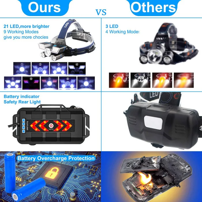 9 режимов работы и удобная Мягкая силиконовая задняя крышка-Поворотный светильник на 90 градусов дает вам свободу направлять светильник именно там, где он вам нужен, силиконовая задняя крышка более удобна для вашей головы. Быстрый выбор из 9 режимов освещения (SOS, стробоскоп в комплекте)