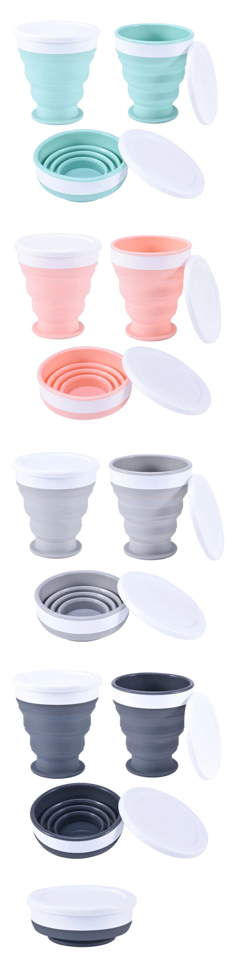 Описание: Складная чашка изготовлена из пищевого силикона, не содержит BPA, безопасна и безопасна для здоровья. Отличный дизайн, стильный, практичный. Это позволяет легко переносить людей. Экономия пространства. И подходит для использования на открытом воздухе, путешествий, встречи, а также используется как удобная кружка дома. Потому что она изготовлена из мягкого силикона, и вы не беспокоитесь об этом. Чашку можно сложить и регулировать. Когда вы складываете его, высота составляет всего 4 см. Вы можете даже положить его в карман, ручную сумку, рюкзак и большинство автомобильных держателей. Когда вы расширяете его, он может держать 310-400 мл воды, и наш дизайнер специально разработан герметичный чехол. Герметичная крышка эффективно предотвращает попадание пыли или других предметов в чашку, сохраняя чашку чистой и гигиеничной во все времена. Короче говоря, это идеальная чашка. Безопасно для посудомоечной машины и микроволновой печи. Номинальная температура-30 градусов Цельсия до 120 градусов Цельсия. Параметры продукта: Материал: силикон + ПП Дополнительный цвет: черный/зеленый/серый/розовый Термостойкость чашки: -30 градусов Цельсия ~ 120 градусов Цельсия Термостойкость крышки: -30 градусов Цельсия ~ 100 градусов Цельсия Емкость: около 400 мл/13,4 унций Диаметр: 10 см Толщина складывания: 4 см Высота чашки: 10,8 см перед сложением