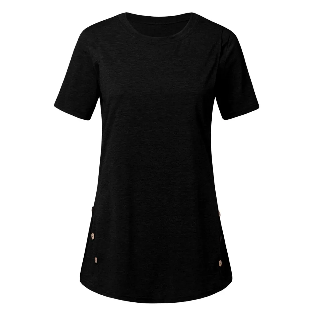 Women's Maternity Short Sleeve Side Button Tunic Nursing Tops For Breastfeeding