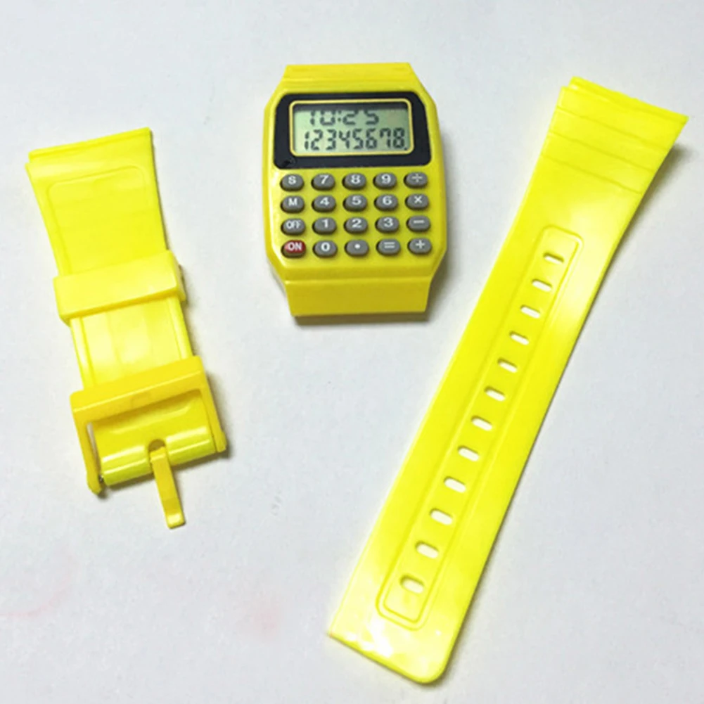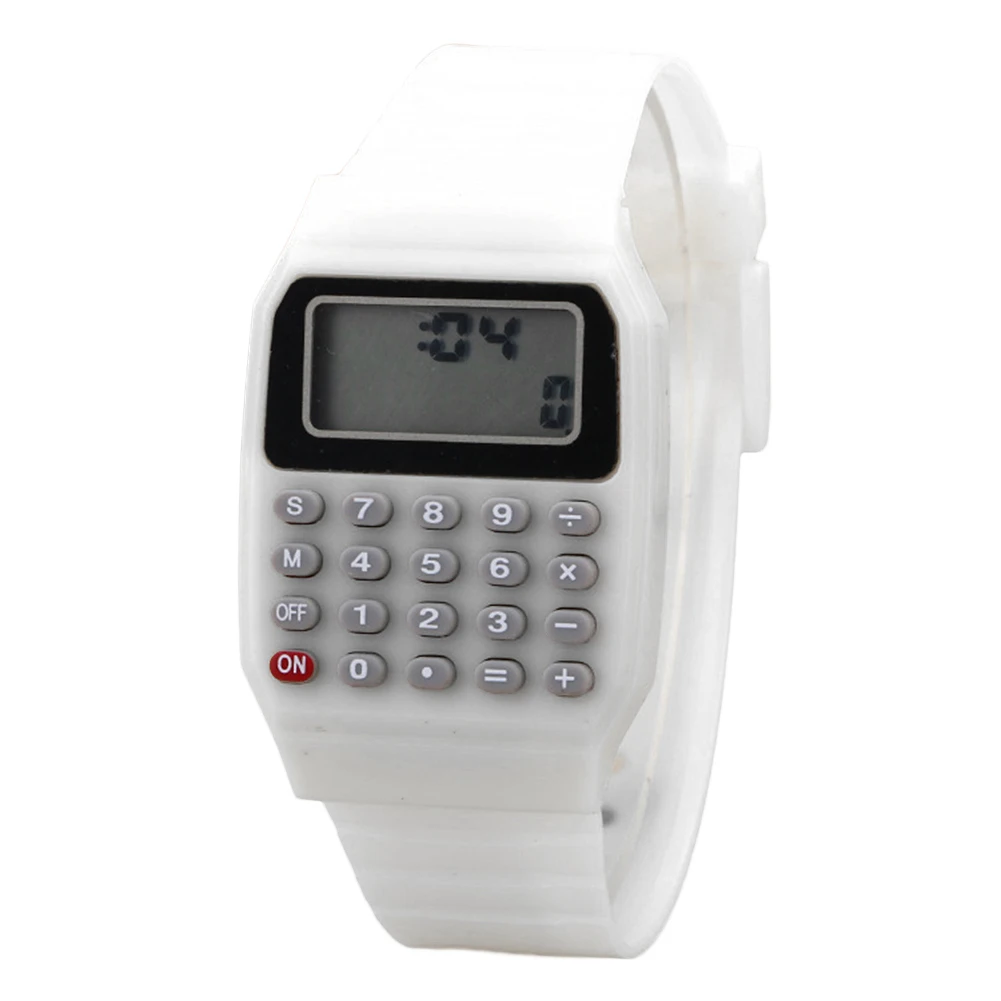 Часы-калькулятор модного дизайна, компактный размер, легко носить с собой.