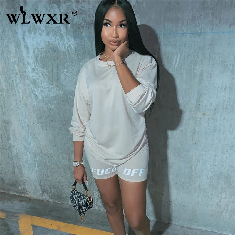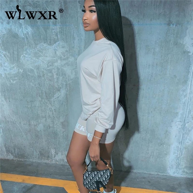WLWXR комплект из двух предметов, шорты для женщин, костюм, летние Клубные наряды, женские байкерские шорты, комплект, Дамский спортивный костюм, женские комплекты, 2020
