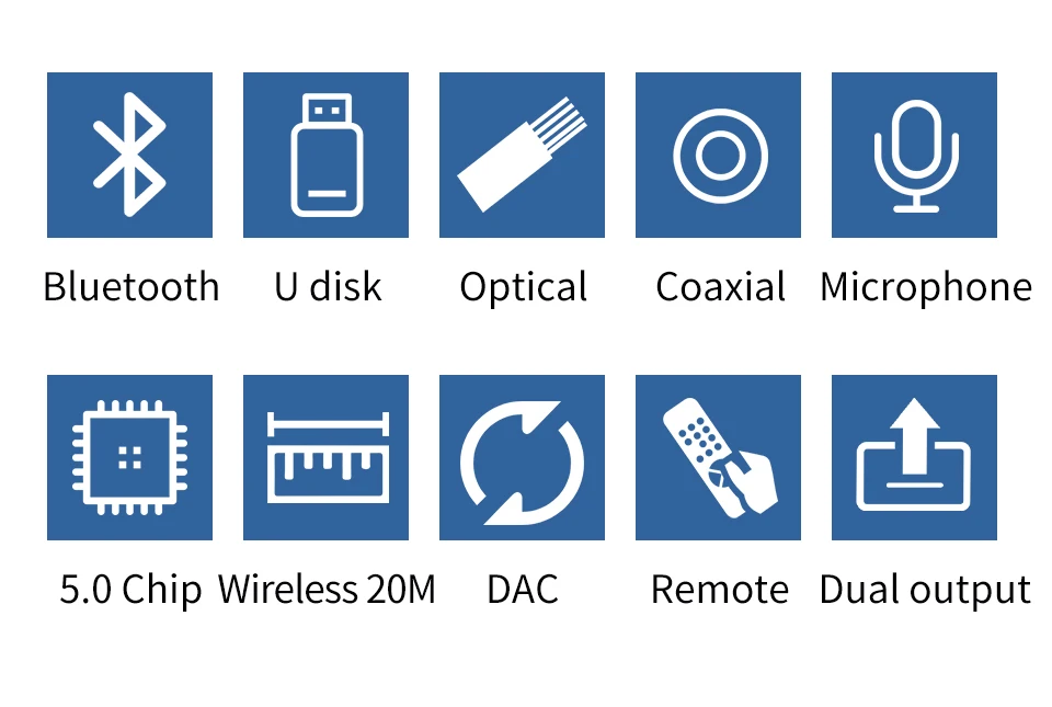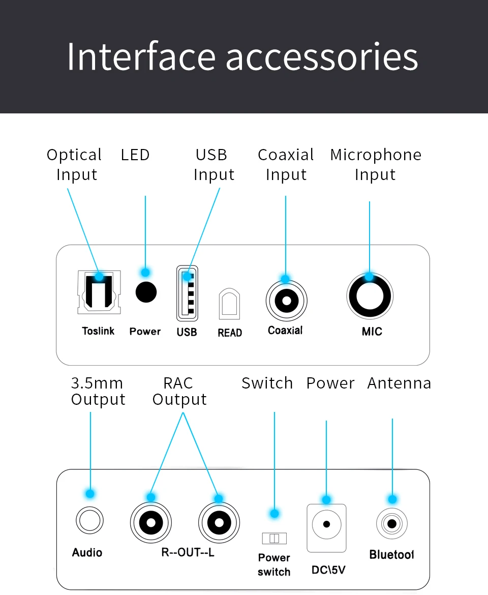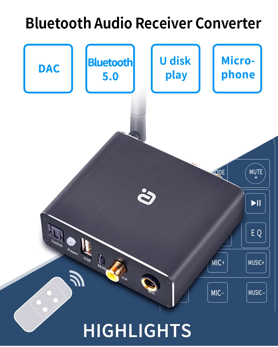 С новейшим интегрированным чипом, Bluetooth 5,0, воспроизведением USB, преобразованием цифрового сигнала и аналогом, KTV Muke wind all-in-one machine, аудио передается на обычный динамик для воспроизведения, обычный динамик модернизирован и используется, и ключ может наслаждаться удобством различных технологий. Пульт дистанционного управления может переключать различные режимы ввода, громкость, вверх и вниз музыку и звуковые эффекты. [Bluetooth 5,0 аудио приемник] принимает самую высокую версию Bluetooth V5.0, обеспечивая лучшую эффективность передачи, стабильность и сверхнизкое энергопотребление. [Цифро-аналоговый преобразователь] Преобразует коаксиальный или оптический цифровой аудиосигнал в аналоговый аудио L/R. Поддержка 44,1 32%, 48-96 кГц воспроизведения. Входной код левого и правого каналов 24 бит s / PDIF. Все соединительные порты изготовлены из позолоченных материалов интерфейса. Обеспечивает электронное шумоподавление. [Воспроизведение музыки на U disk] с интерфейсом USB, он может непосредственно воспроизводить музыку на U disk, поддерживает MP3, WAV, wma, ape, FLAC, SBC и другие Аудиоформаты. Поддержка дистанционного управления: воспроизведение/пауза, предыдущая, следующая настройка звукового эффекта. [Вход для микрофона KTV] интерфейс микрофона, опционально с mukefeng для KTV, пульт дистанционного управления поддерживает музыку, mukefeng, регулировка громкости эхо и переключение звукового эффекта. Параметры: Аудио Входное Соединение: коаксиальный или оптический цифровой аудио, Bluetooth 5,0, USB флэш-диск, микрофон Аудиовыход: 3,5 мм 2xRCA (R /L) Поддержка 44,1 32%, 48-96 кГц воспроизведения Входная мощность: 100-240 В переменного тока 50/60 Гц Тип питания: зарядное устройство или USB кабель питания Источник питания: 5 В 1a (рекомендуется) Размер изделия: 85x70x28 мм Аксессуары: DA310 * 1 Кабель питания USB * 1 Адаптер 5 в * 1 (опционально) Аудиокабель 3,5 Лотос * 1 Оптический аудио кабель * 1 Пульт дистанционного управления * 1