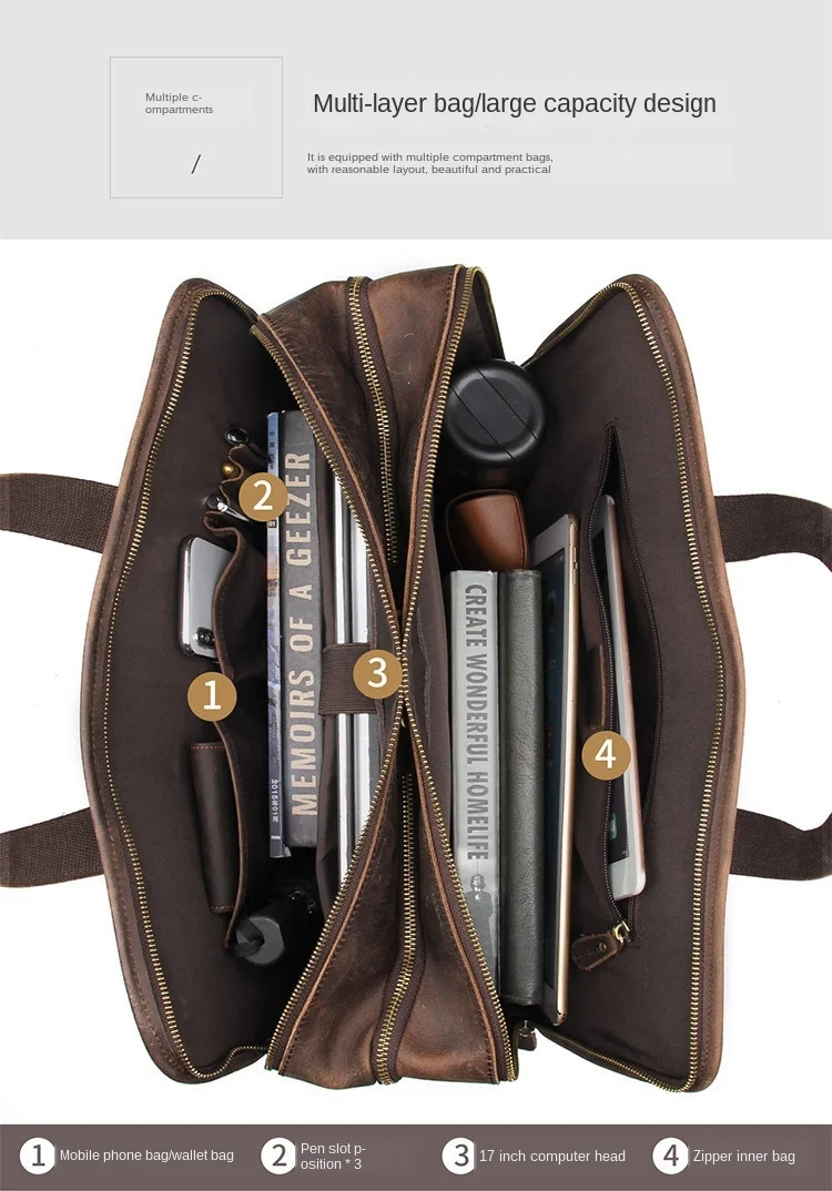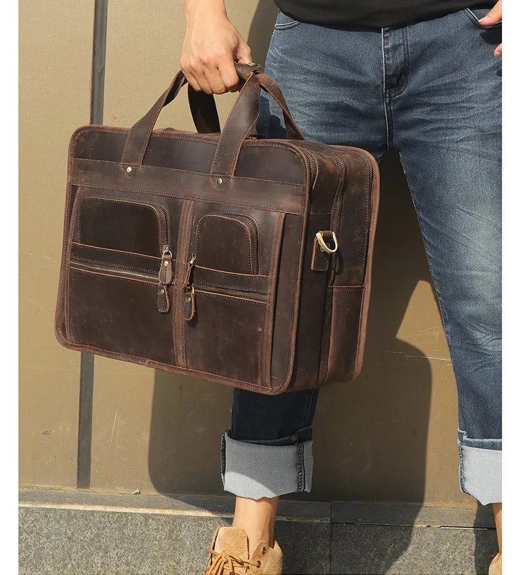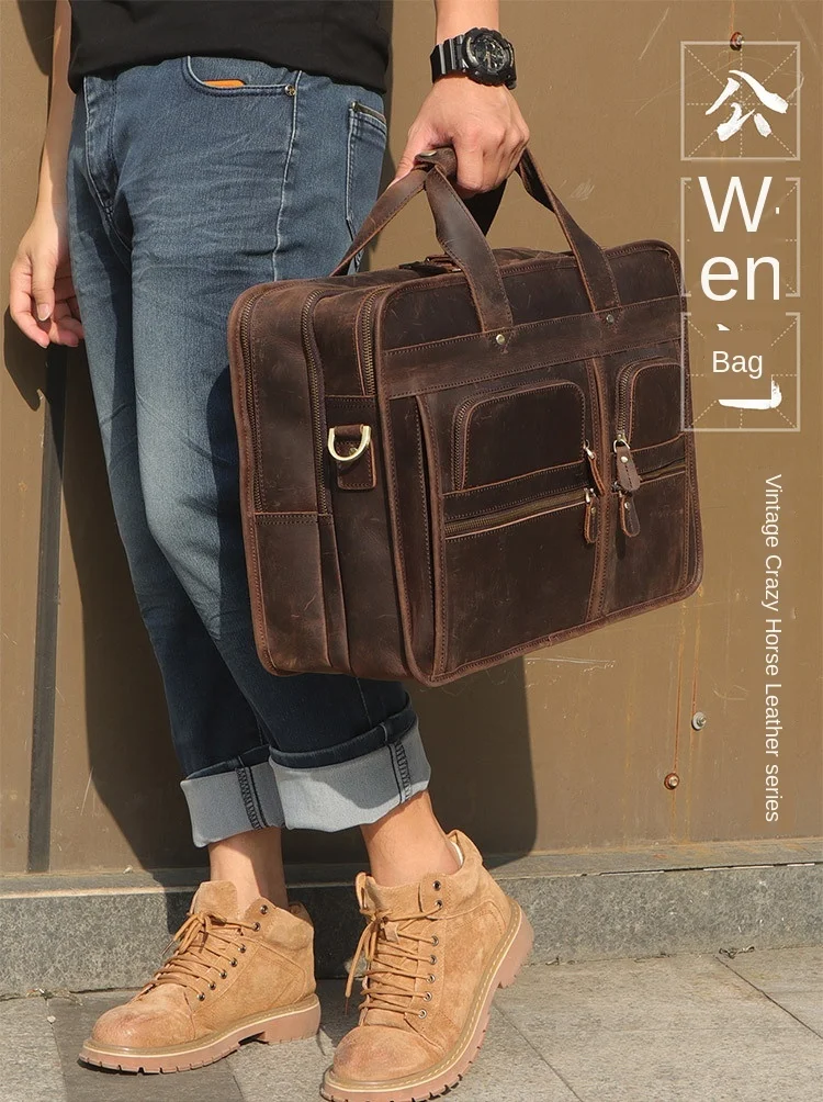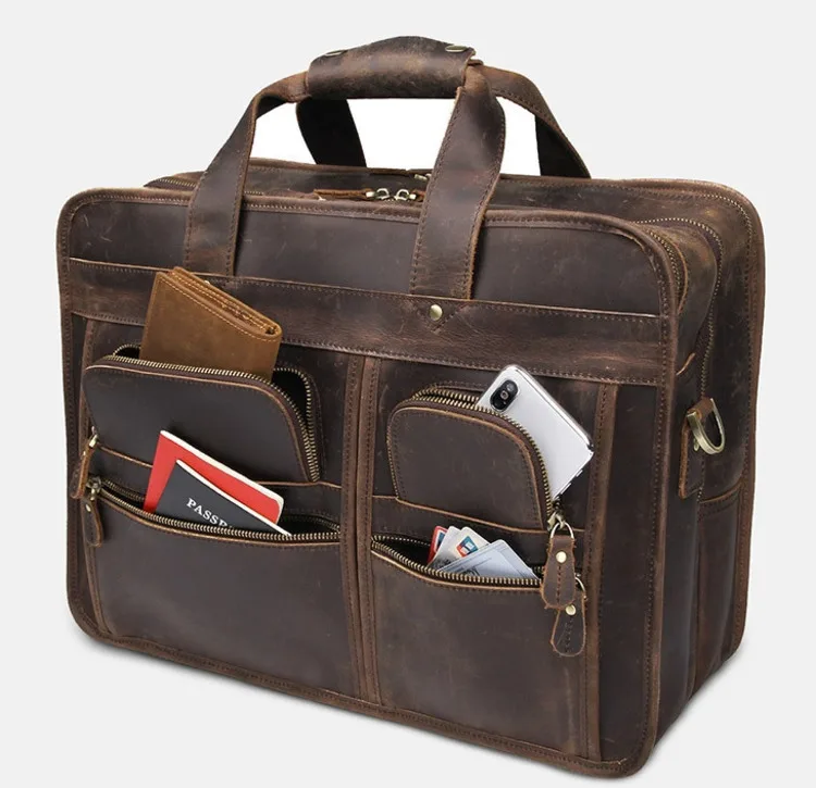 Название: больше Карманный портфель, сумка Crazy Horsehide, 17 дюймов, компьютерный портфель, натуральная кожа, мужские Кожаные Офисные Сумки для мужчин, сумка для ноутбука 15 дюймов, maletines hombre cuero genuino, мужской деловой портфель