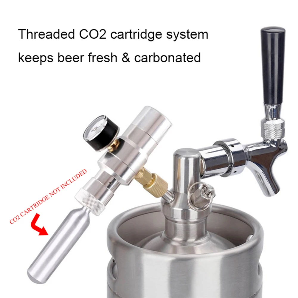 Резьбовая система СО2 картриджа (СО2 картридж не входит в комплект) сохраняет пиво свежим и газированным.
