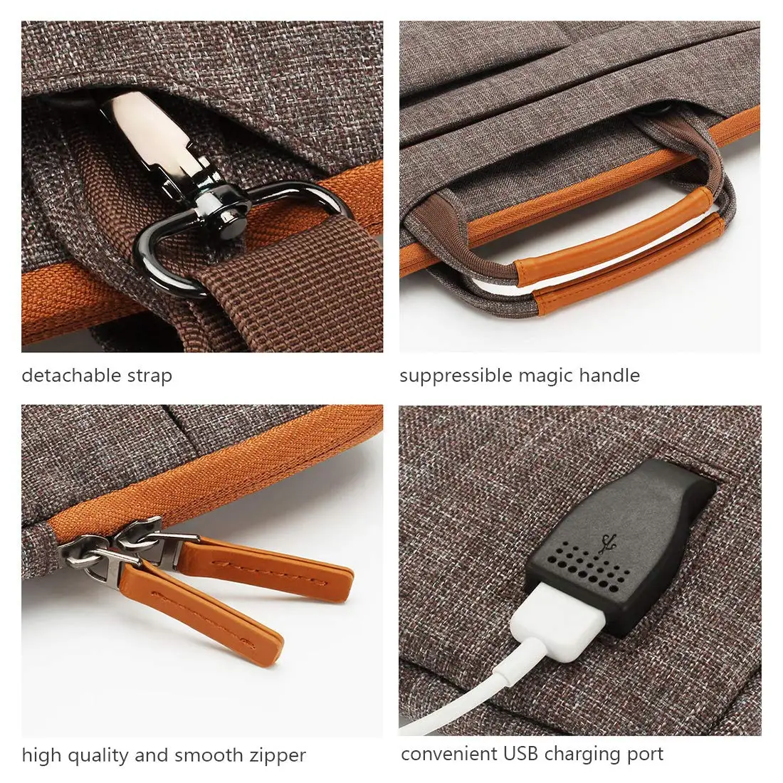 ★Внешний интерфейс USB: встроенный порт USB для зарядки с жестким контролем качества, внутри переднего кармана предусмотрен съемный кабель для передачи данных, в котором вы можете поместить свой внешний аккумулятор (не входит в комплект), затем легко заряжайте электронное устройство, вставляя его в usb-порт во время работы или прогулки. Вы можете удалить кабель передачи данных и заменить его самостоятельно, чтобы удовлетворить ваши различные пожелания. ★Наплечный ремень и мягкая ручка: поставляется как с верхней ручкой, которую можно носить вручную, так и с плечевым ремнем, чтобы носить с собой через плечи. Принять съемный регулируемый плечевой ремень, отличающийся от 70 см до максимума 130 см, вы можете использовать его в удобном для вас способ. Мягкие верхние ручки рукава позволяют удобно носить с ноутбуком в течение длительного времени, а также могут свернуть его в переднем кармане, когда не требуется. ★Достаточно места для хранения: три кармана спереди и один карман на молнии сзади, чтобы увеличить пространство для хранения, обеспечивая достаточно места для хранения небольших личных вещей, таких как файлы, ручки, кабели, зарядные устройства, внешний аккумулятор, мышь или другие аксессуары для ноутбуков. Сделать вашу поездки гораздо более удобной и комфортной. ★5-Слои-защиты: с водостойкими снаружи, мягкая подкладка и Слои для животика и амортизацией, кроме того, этот рукав может защитить ваш ноутбук от пыли, грязи и царапин.