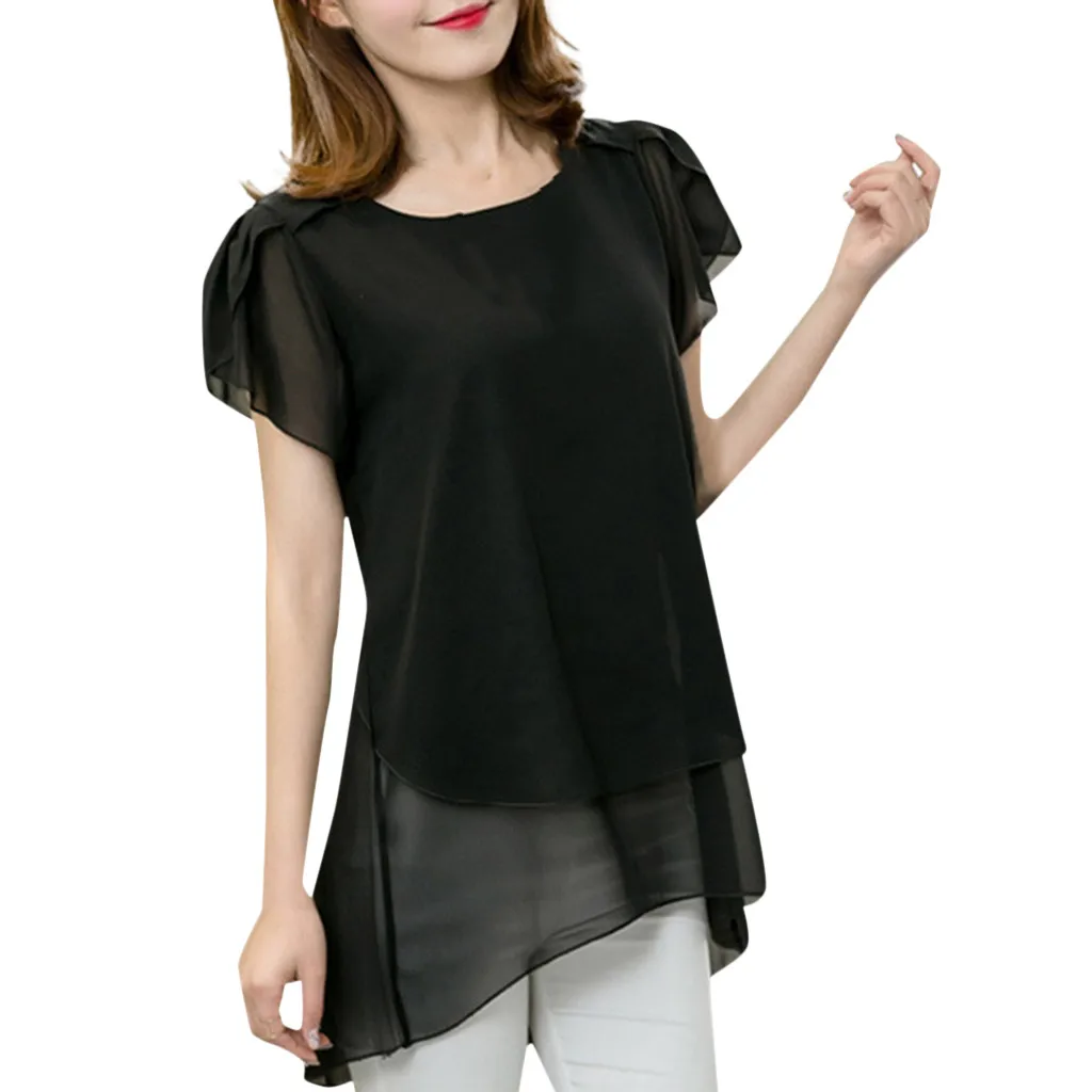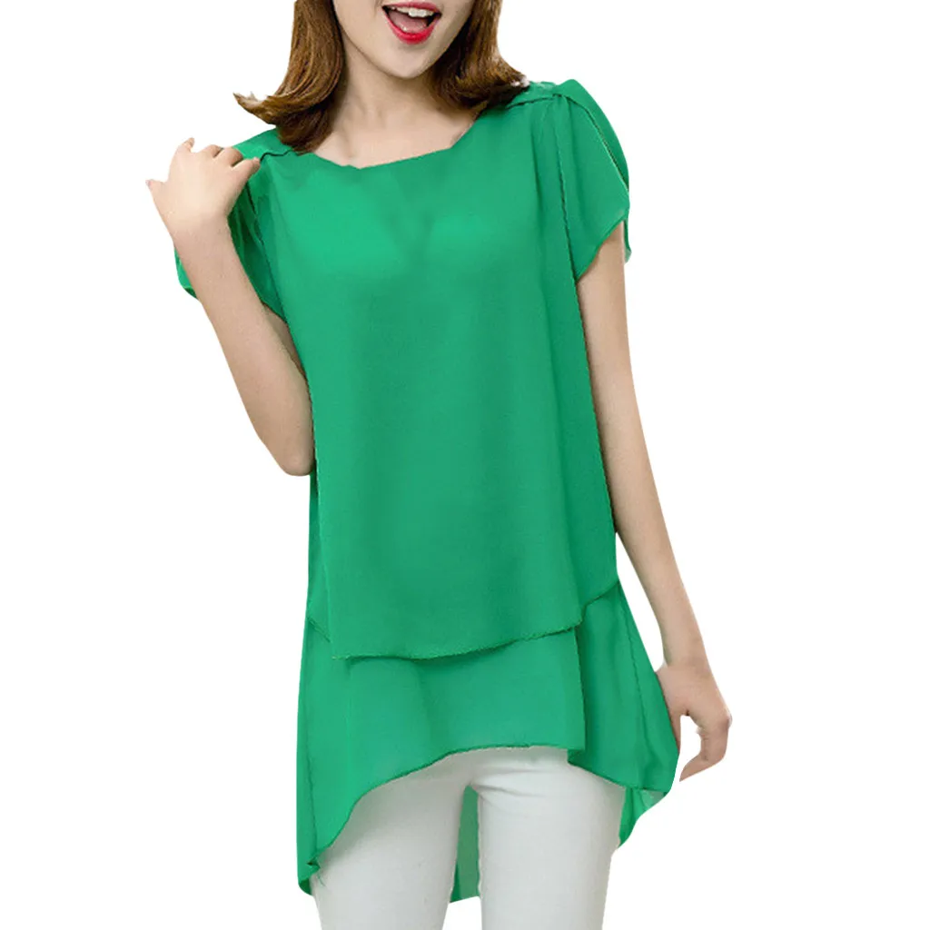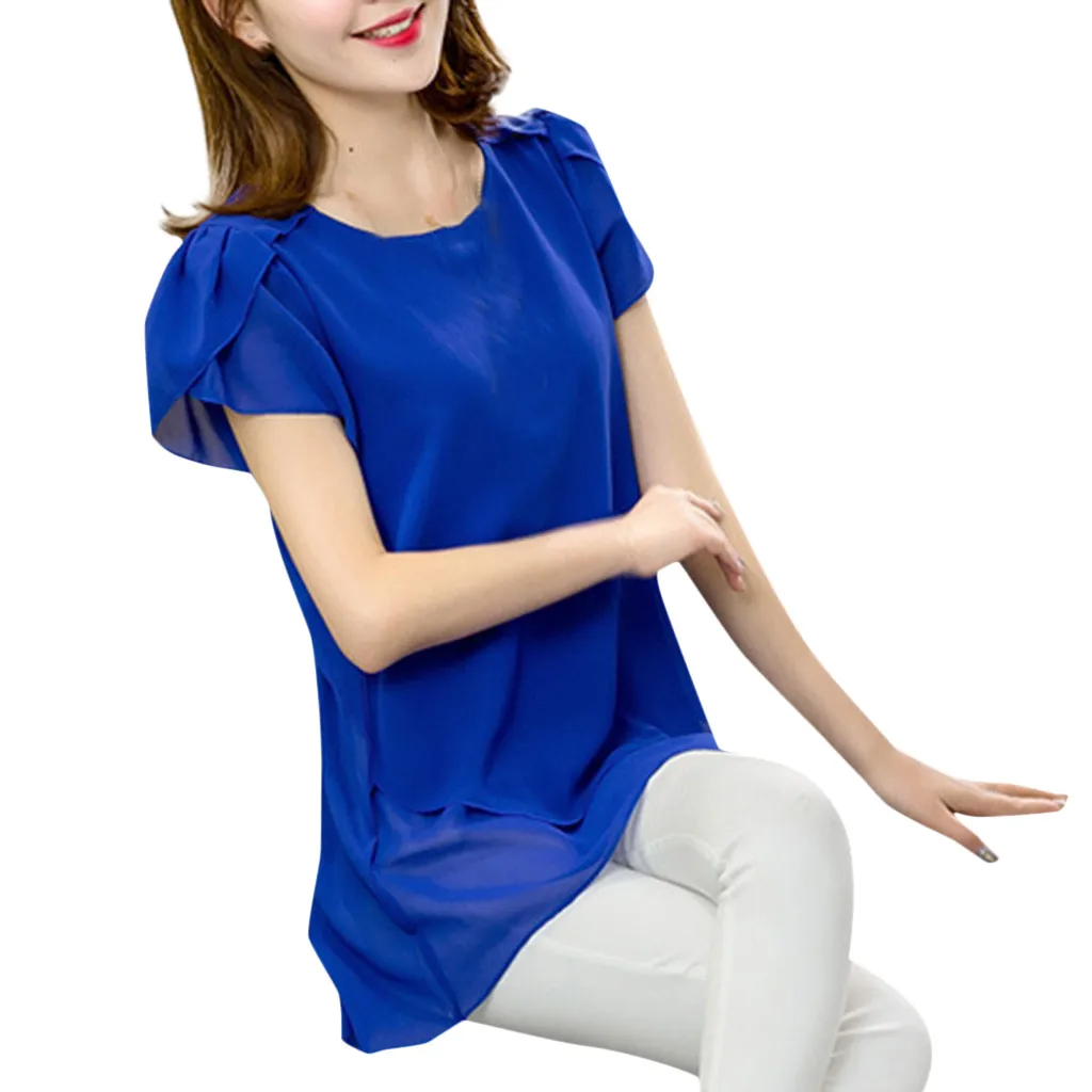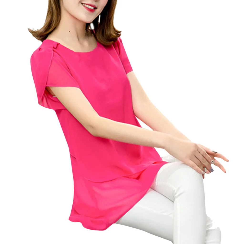 Женская шифоновая рубашка с коротким рукавом, топы, рубашка большого размера, свободная длинная рубашка