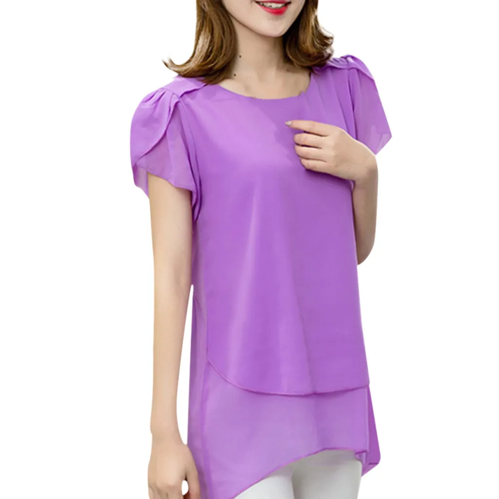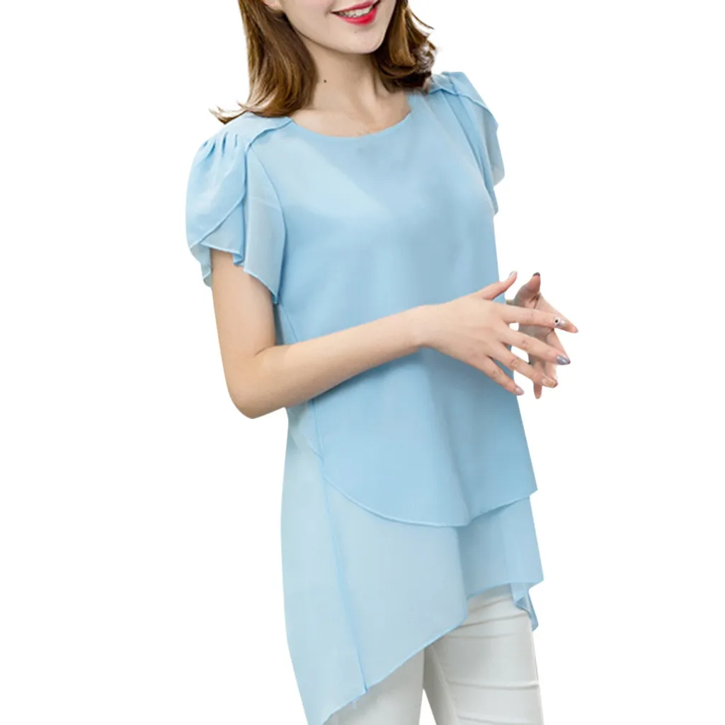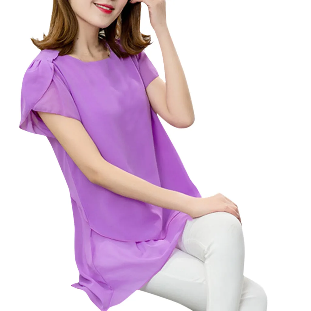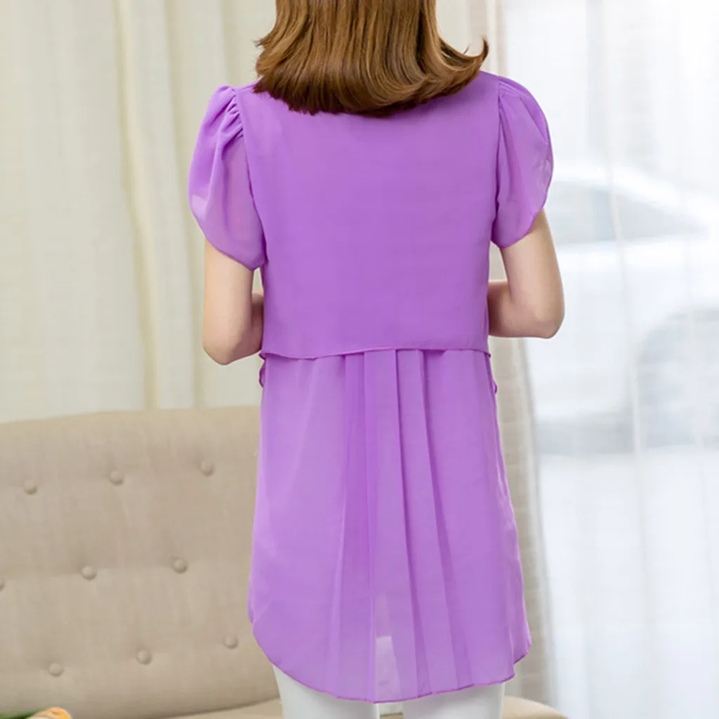 Женская шифоновая рубашка с коротким рукавом, топы, рубашка большого размера, свободная длинная рубашка