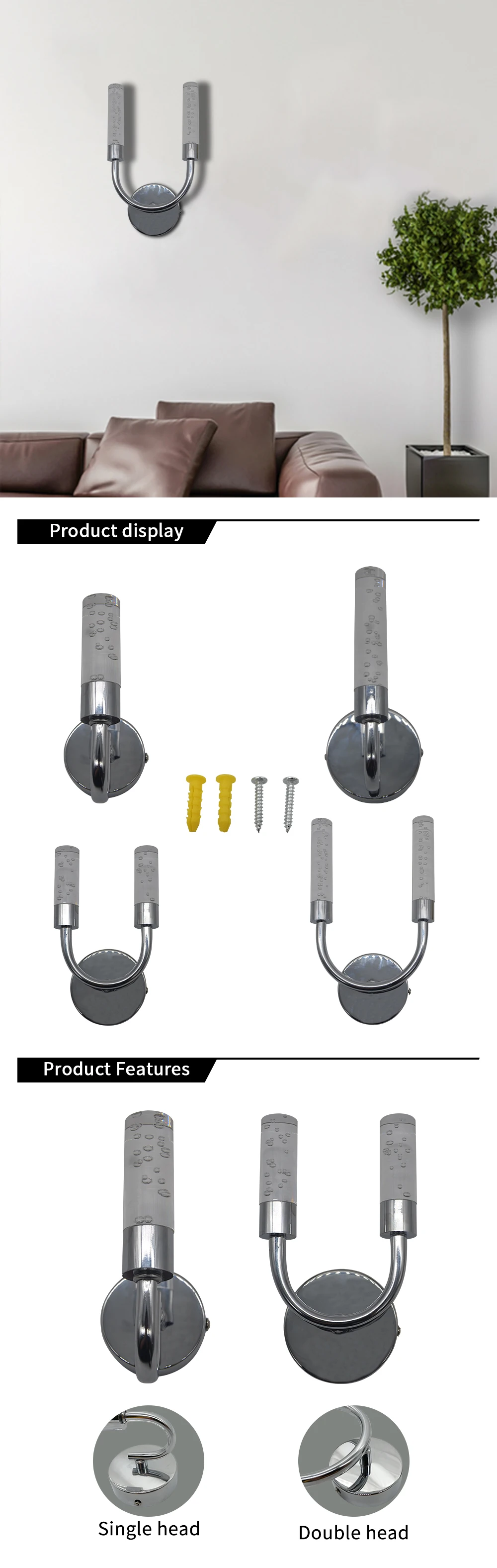 Светодиодный хрустальный настенный светильник