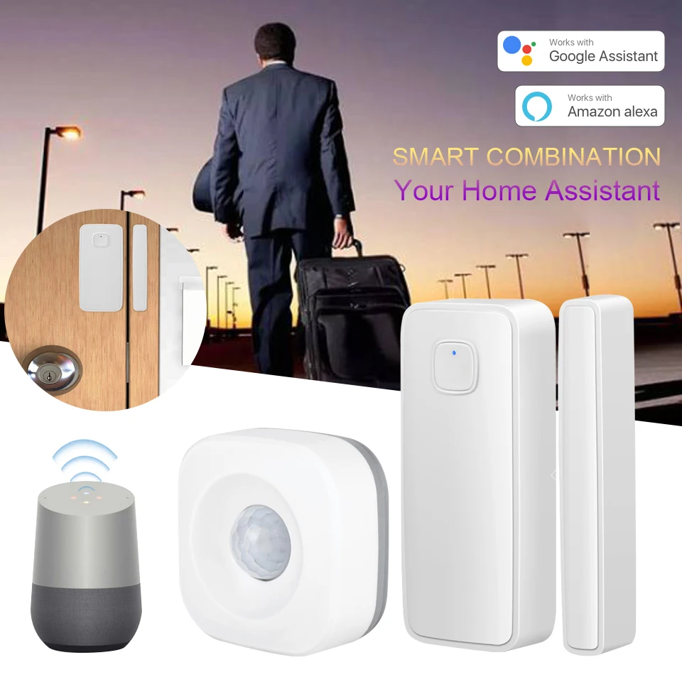 Обратите внимание: дверной датчик совместим с Alexa и Google Home. Датчик движения не совместим с Alexa, совместим с Google Home.