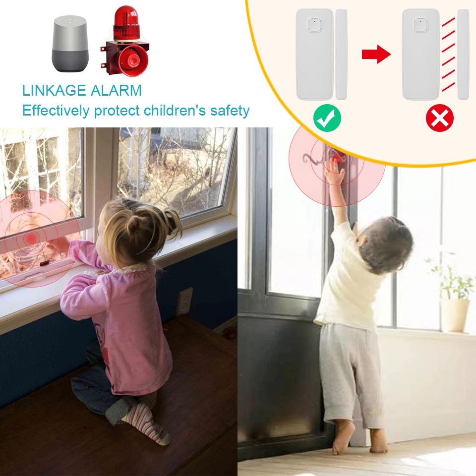 Tuya беспроводной WiFi дверной сигнализатор, датчик окна, умный дом, дверной магнитный переключатель, совместимый с Alexa Echo Google Home