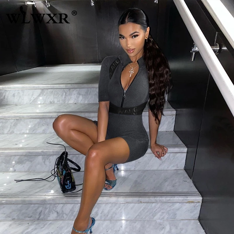 WLWXR уличная одежда, вязаный Летний комбинезон, женские шорты, комбинезон на молнии, Байкерский черный сексуальный комбинезон, облегающий женский комбинезон