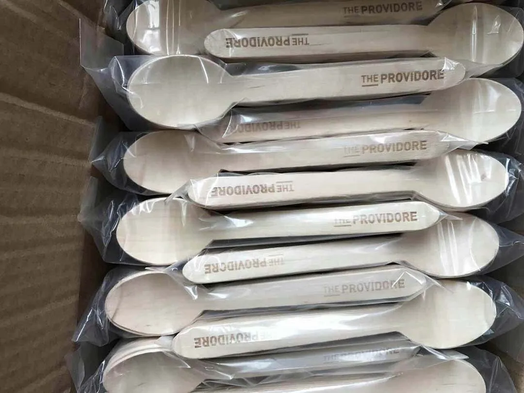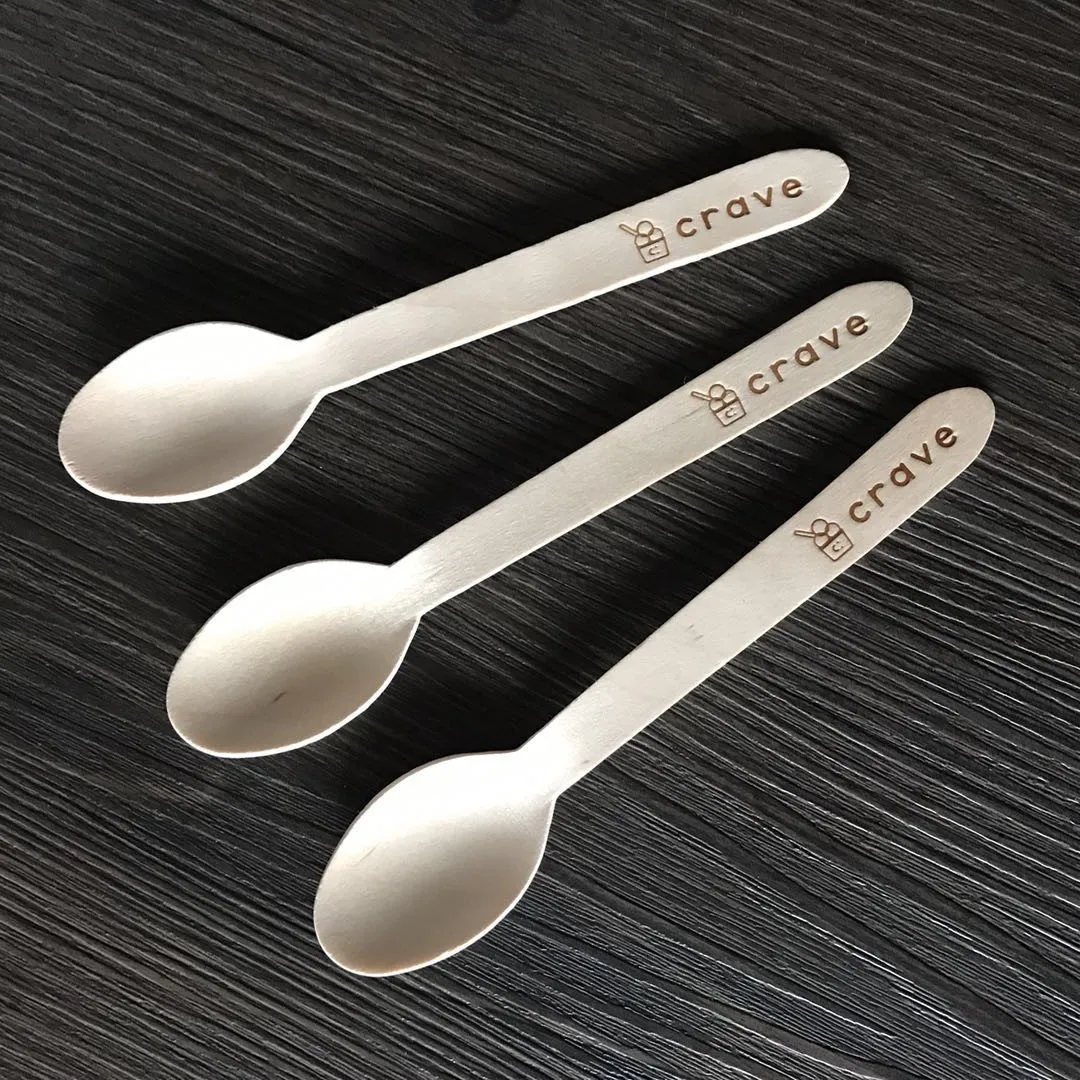 18326 #, 6 дюймов 16 см одноразовый деревянный логотип на заказ десерт на заказ Выгравированная большая ложка для мороженого Персонализированная торговая марка напиток суп ложка