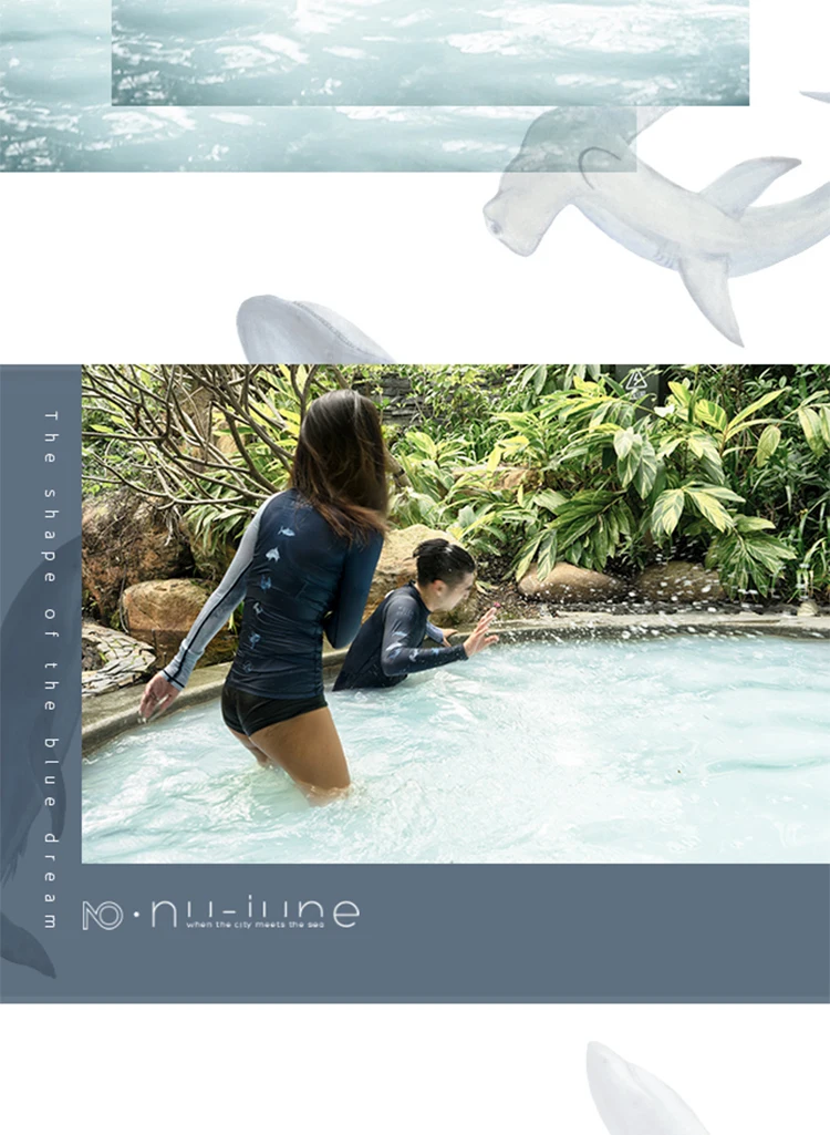Nu-June Rashguard женский купальный костюм с длинным рукавом, купальный костюм с принтом, топ для серфинга, рубашка для плавания UPF50 +, купальный костюм из двух предметов
