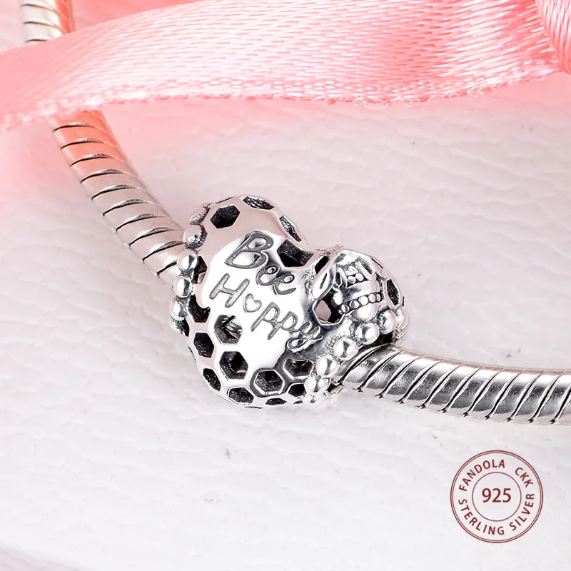 Весенний браслет Pandora из стерлингового серебра 925 пробы пчела Happy Honeycomb, очаровательные бусины в форме сердца для женщин, модные ювелирные изделия, 2020